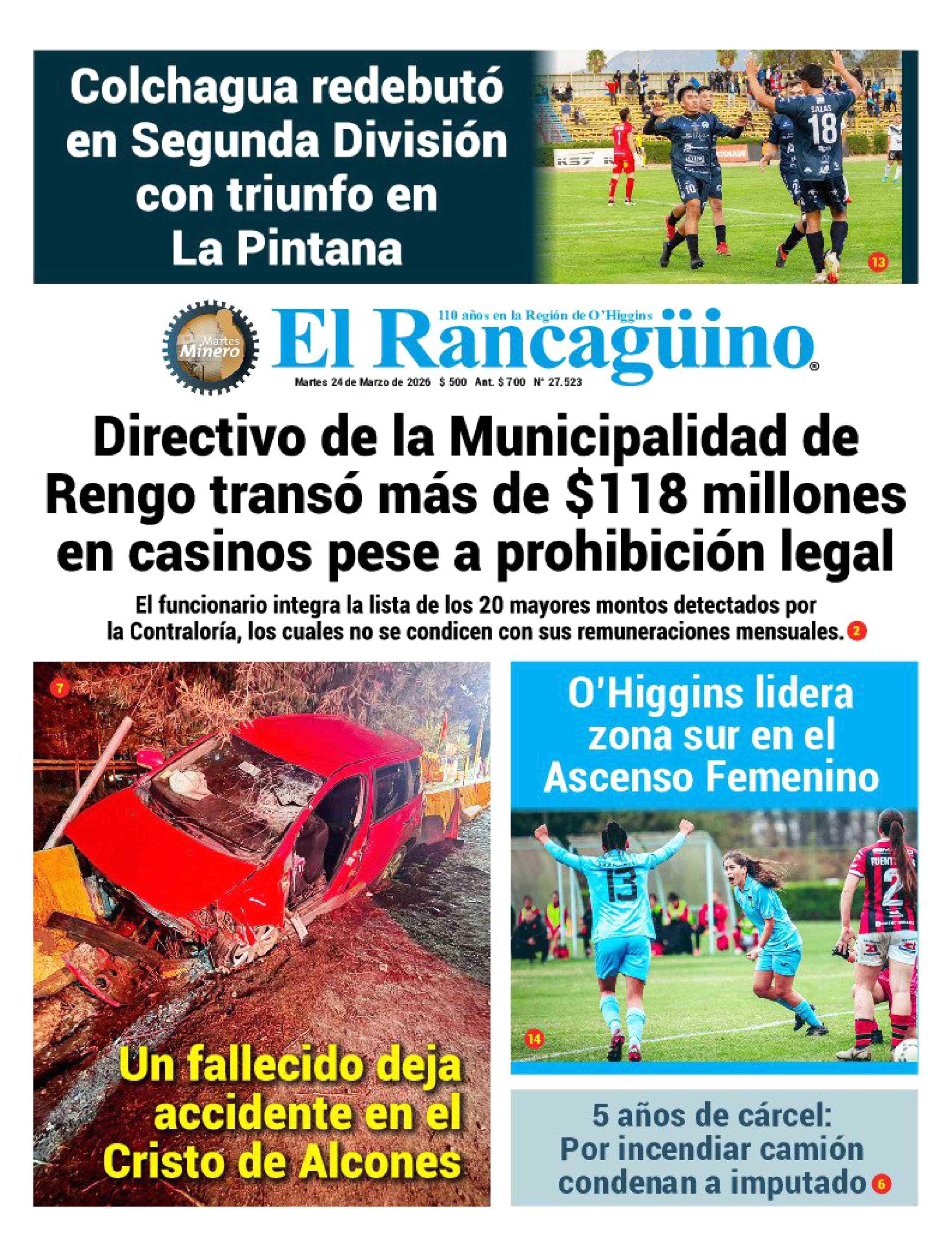 PORTADA EL RANCAGÜINO CHILE 24-03-2026 El Rancagüino |