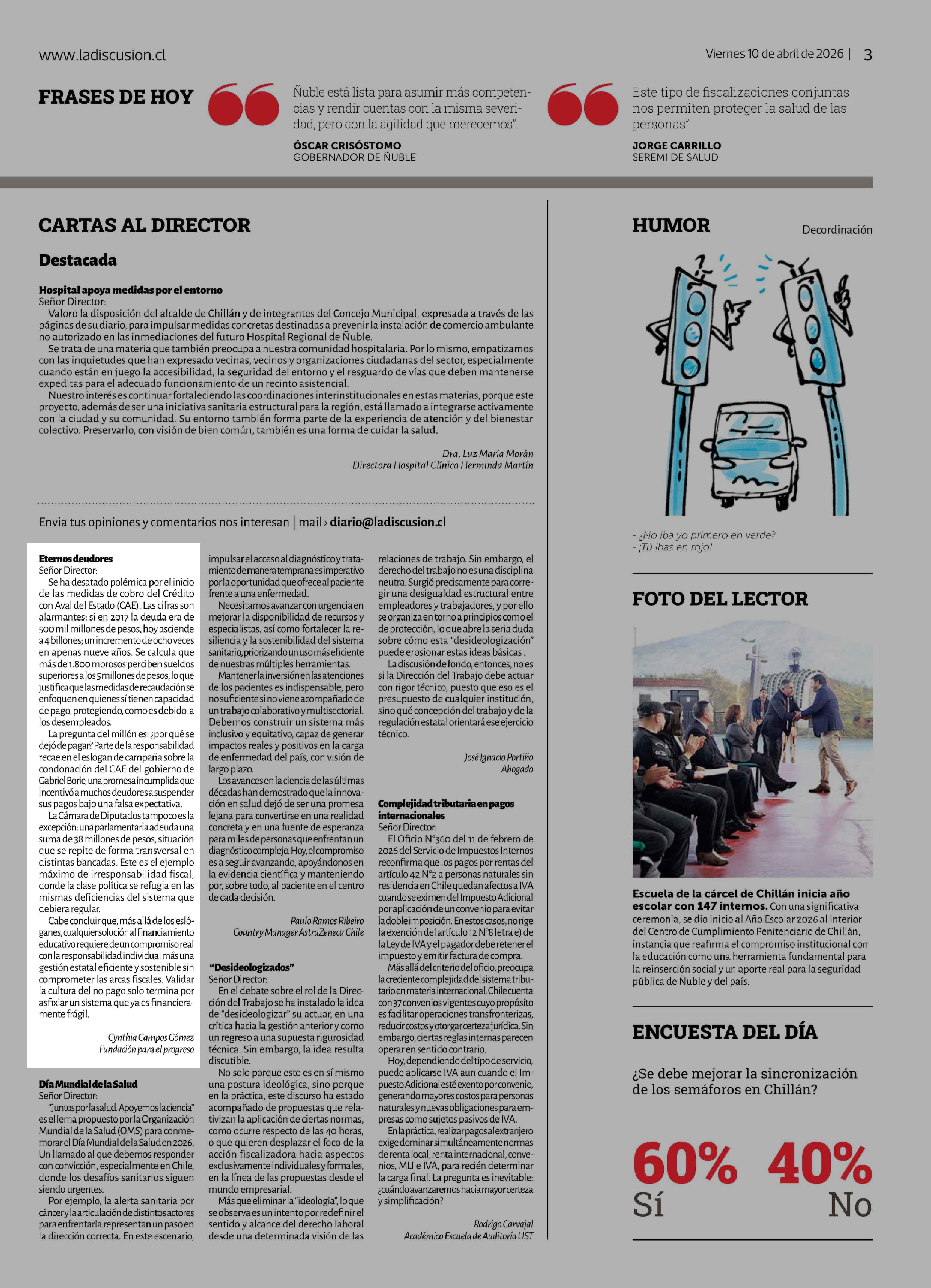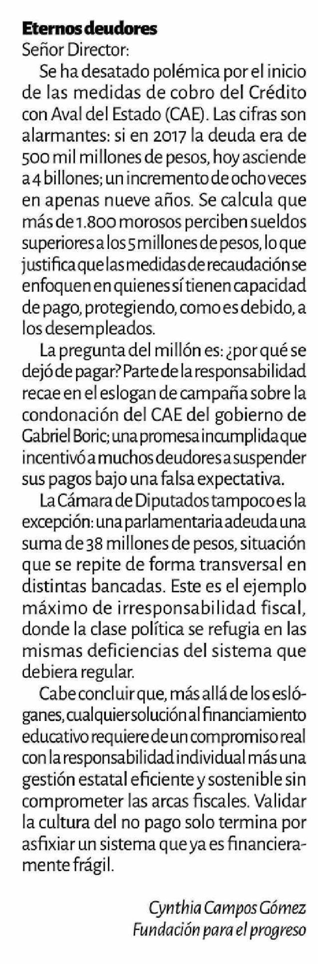 Cartas: Eternos deudores 10-04-2026 La Discusión |