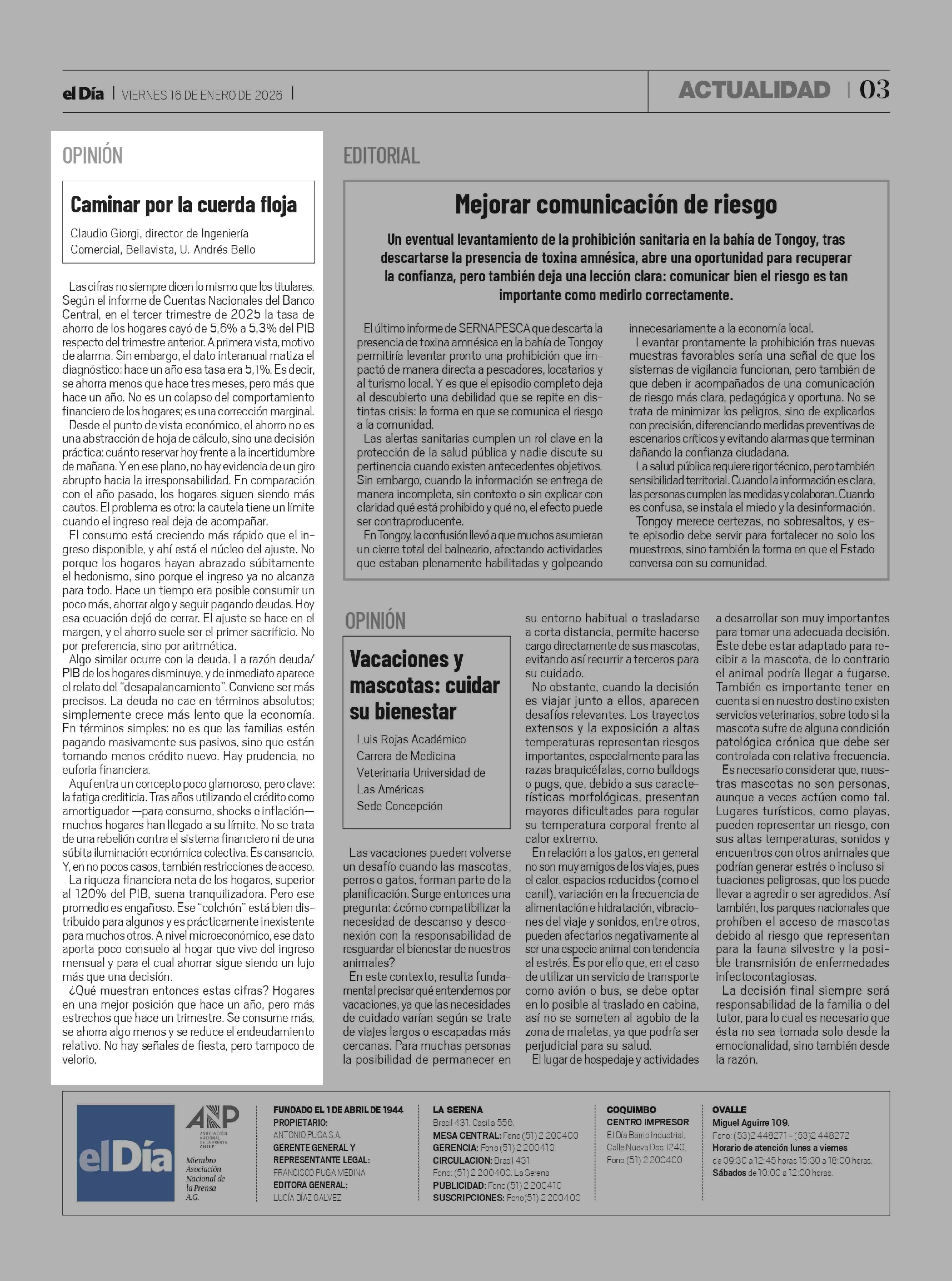 | Fecha: | 16-01-2026 | Sector: | Columnas de Opinión | Región: | Región de Coquimbo |
