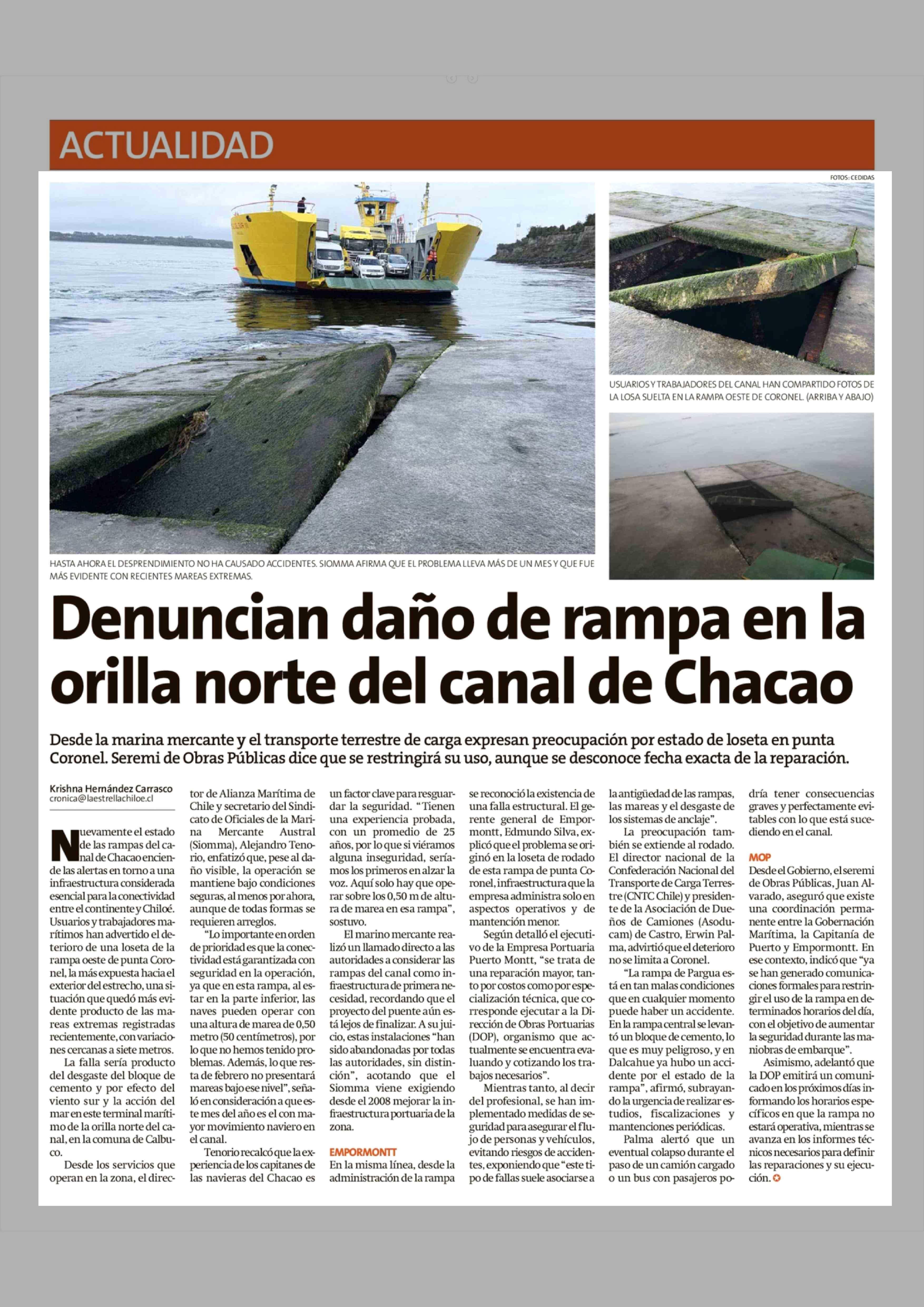 Título: Denuncian daño de rampa en la orilla norte del canal de Chacao