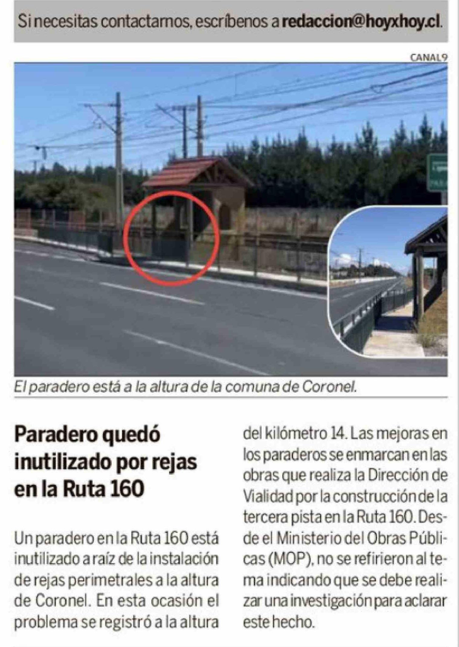 Título: Paradero quedó inutilizado por rejas en la Ruta 160