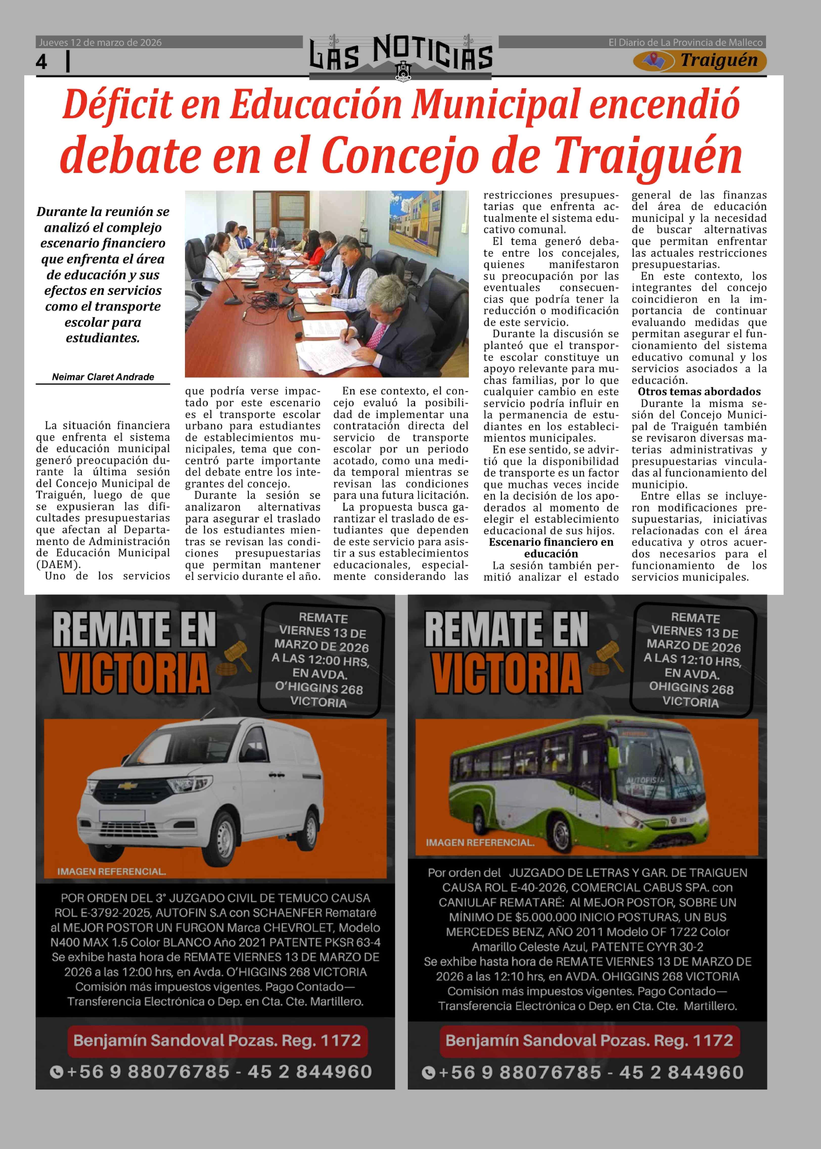 Déficit en Educación Municipal encendió debate en el Concejo de Traiguén 12-03-2026 Las Noticias |