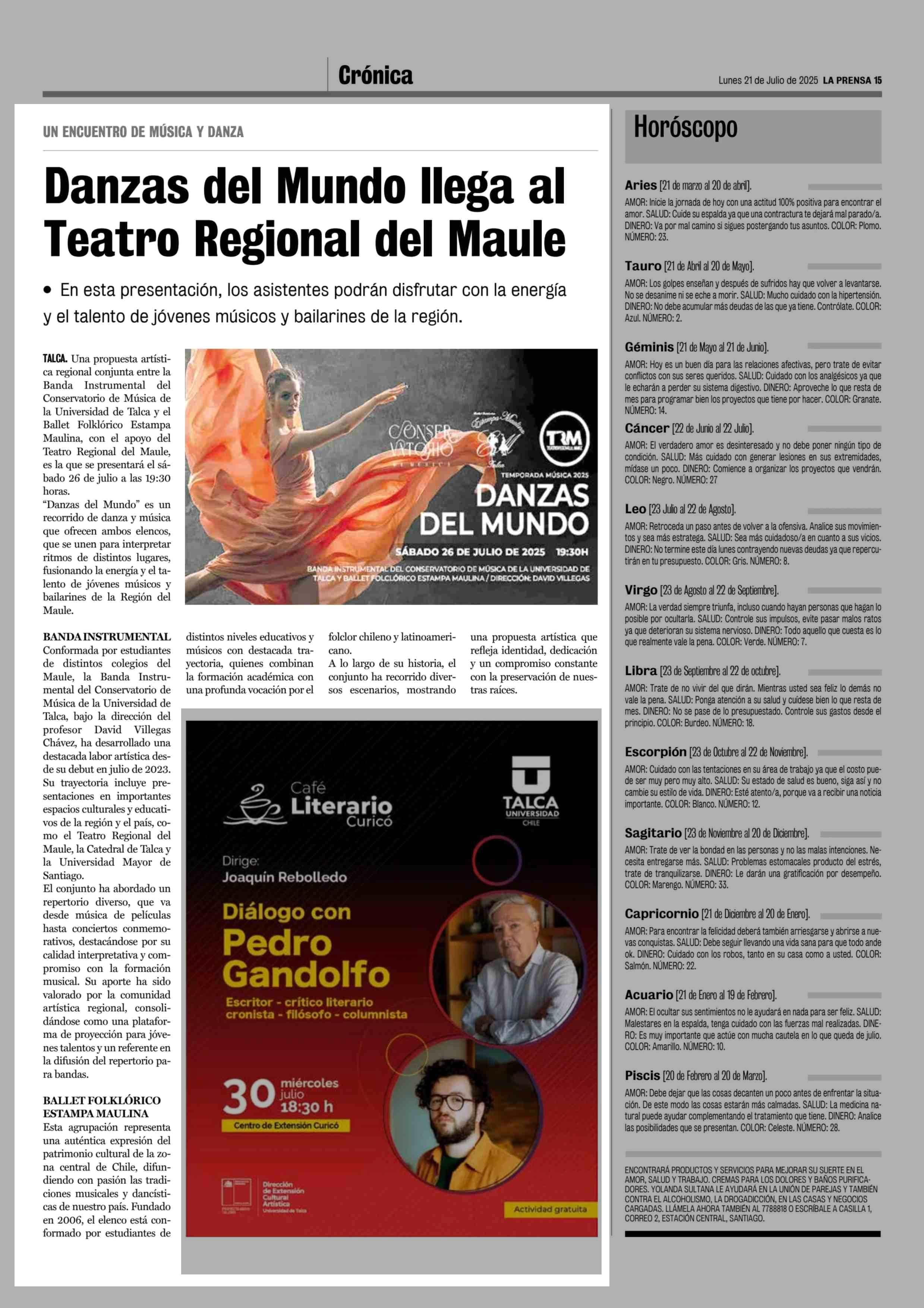 Danzas del Mundo llega al Teatro Regional del Maule 21-07-2025 La Prensa de Curicó |