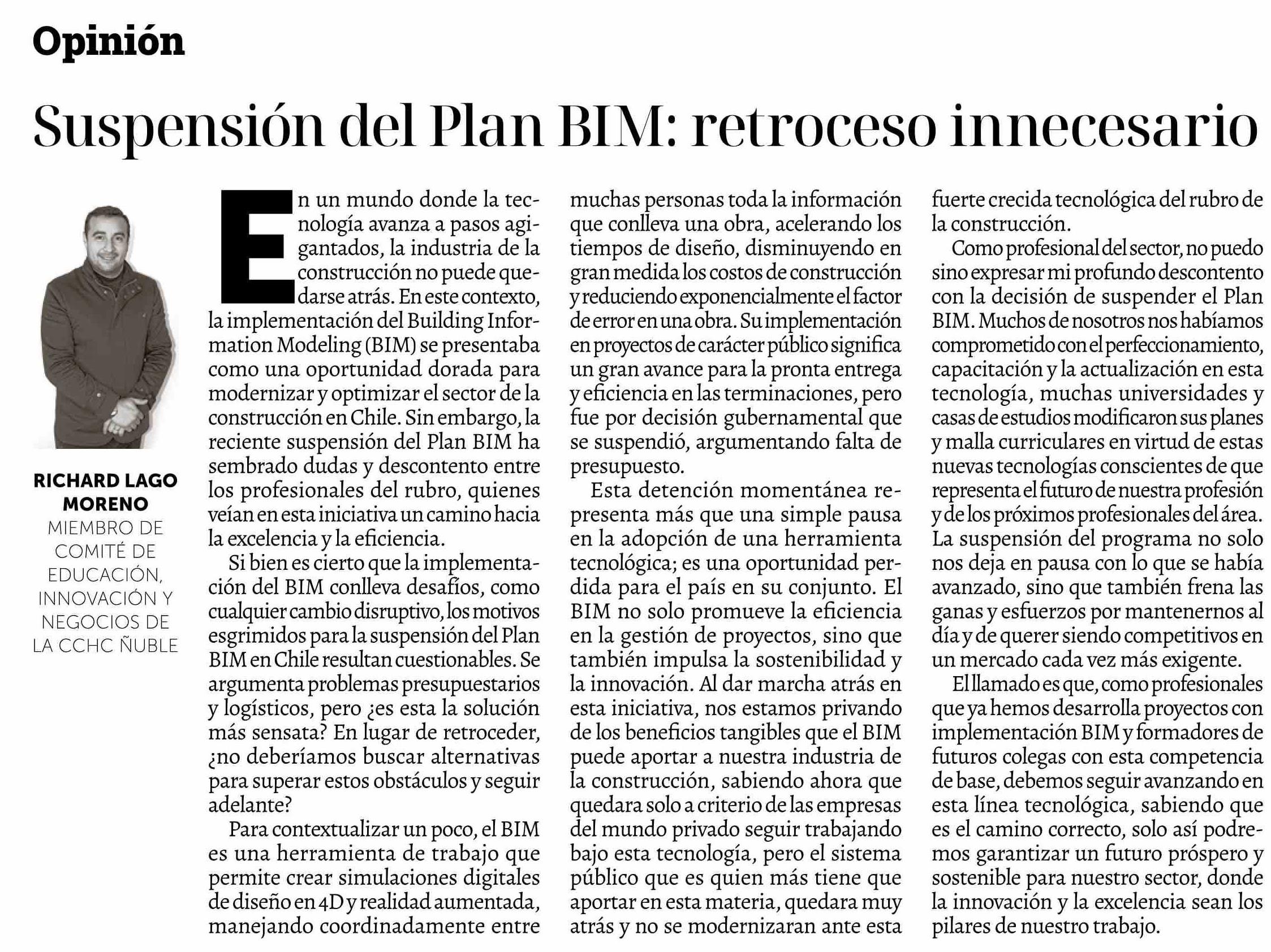Suspensión del Plan BIM: retroceso innecesario 05-06-2024 La Discusión |