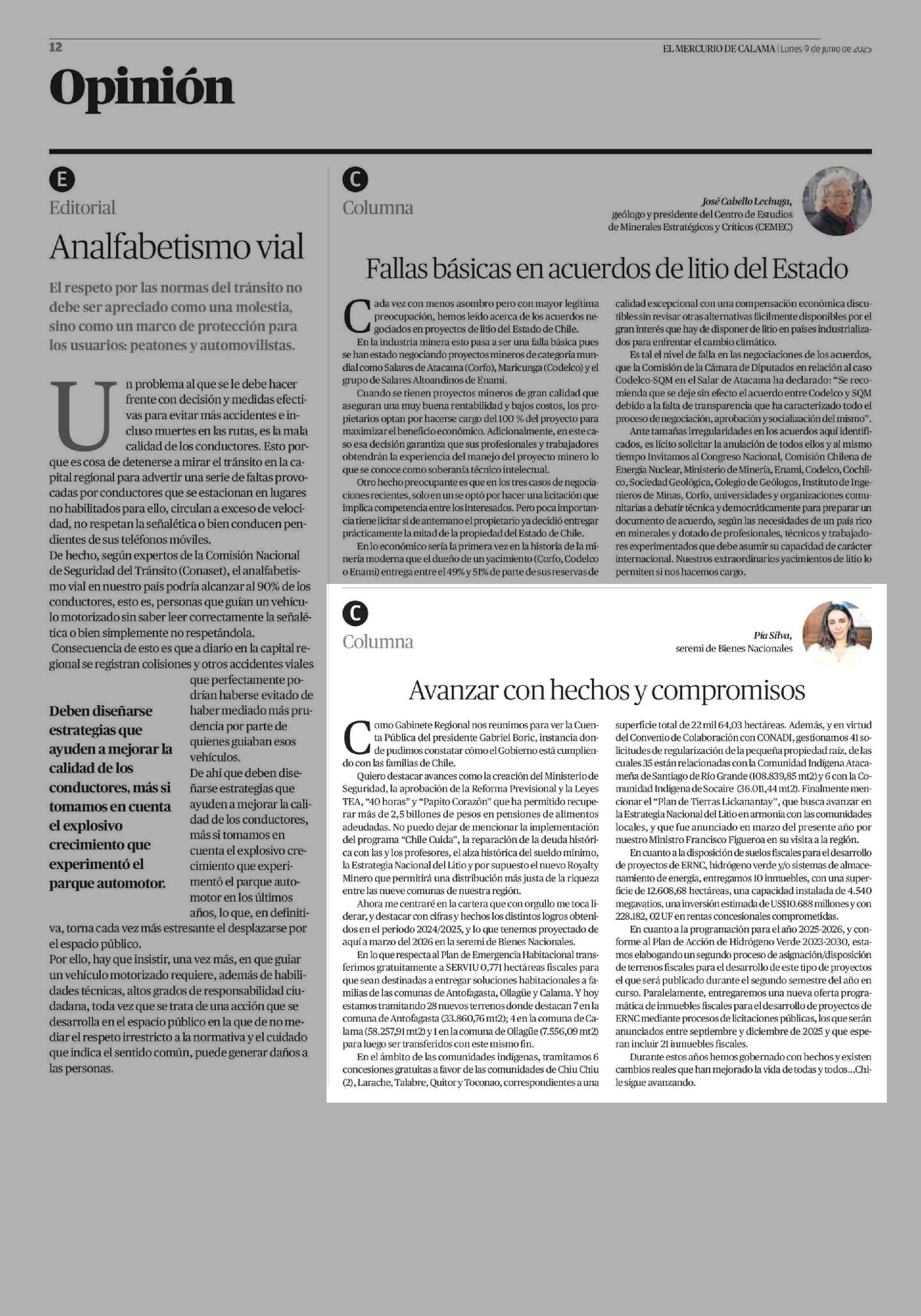 Columnas de Opinión: Avanzar con hechos y compromisos 09-06-2025 El Mercurio de Calama |