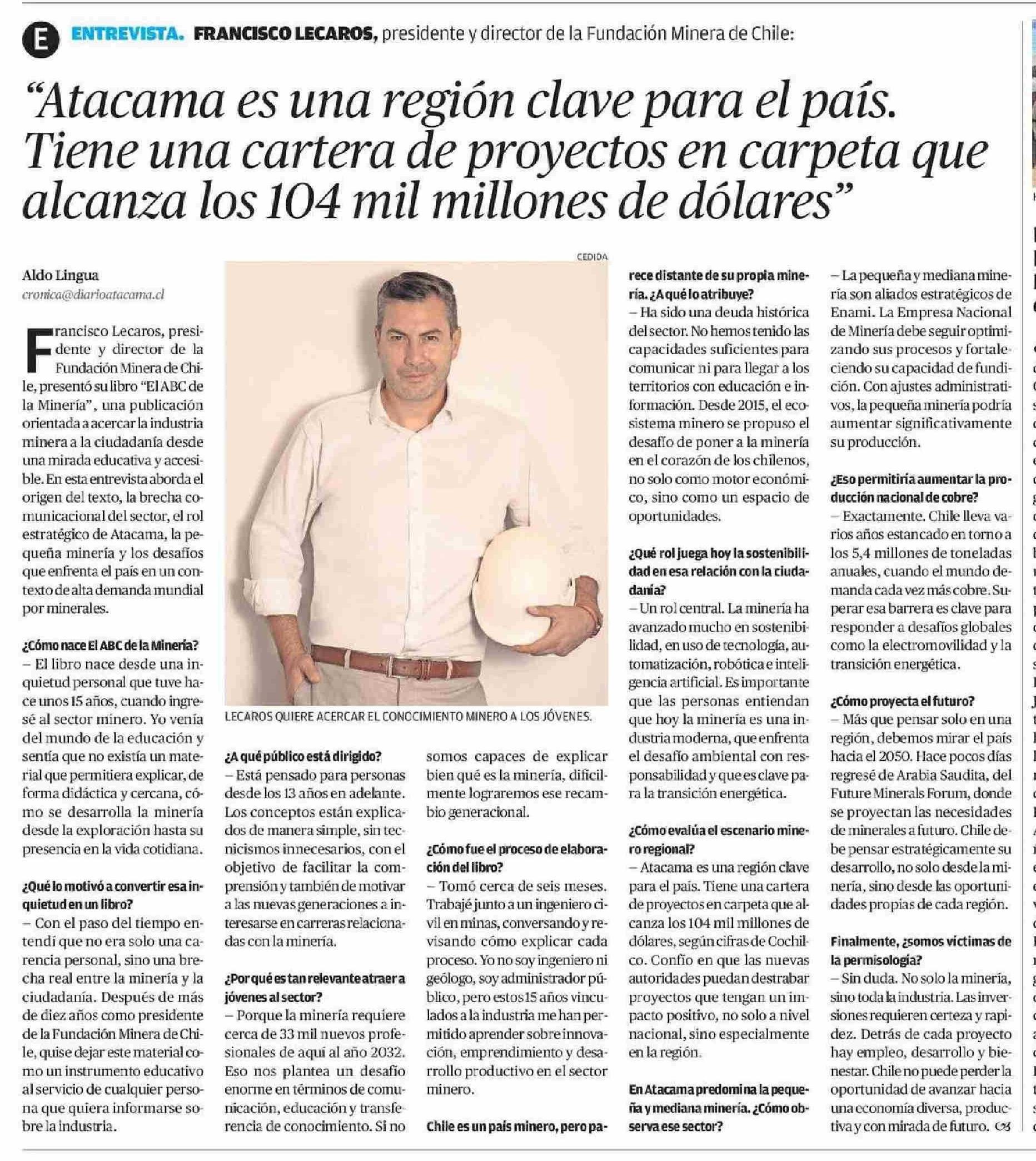 | Título: | "Atacama es una región clave para el país. Tiene una cartera de proyectos en carpeta que alcanza los 104 mil millones de dólares" |
