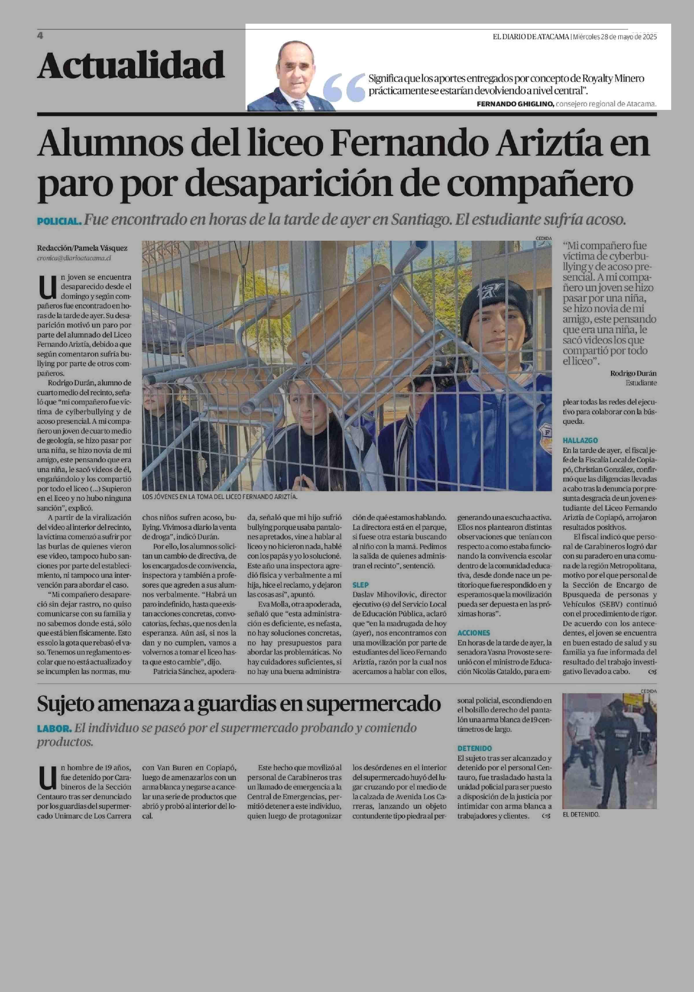 | Fecha: | 28-05-2025 | Sector: | Noticia general | Región: | Región de Atacama |