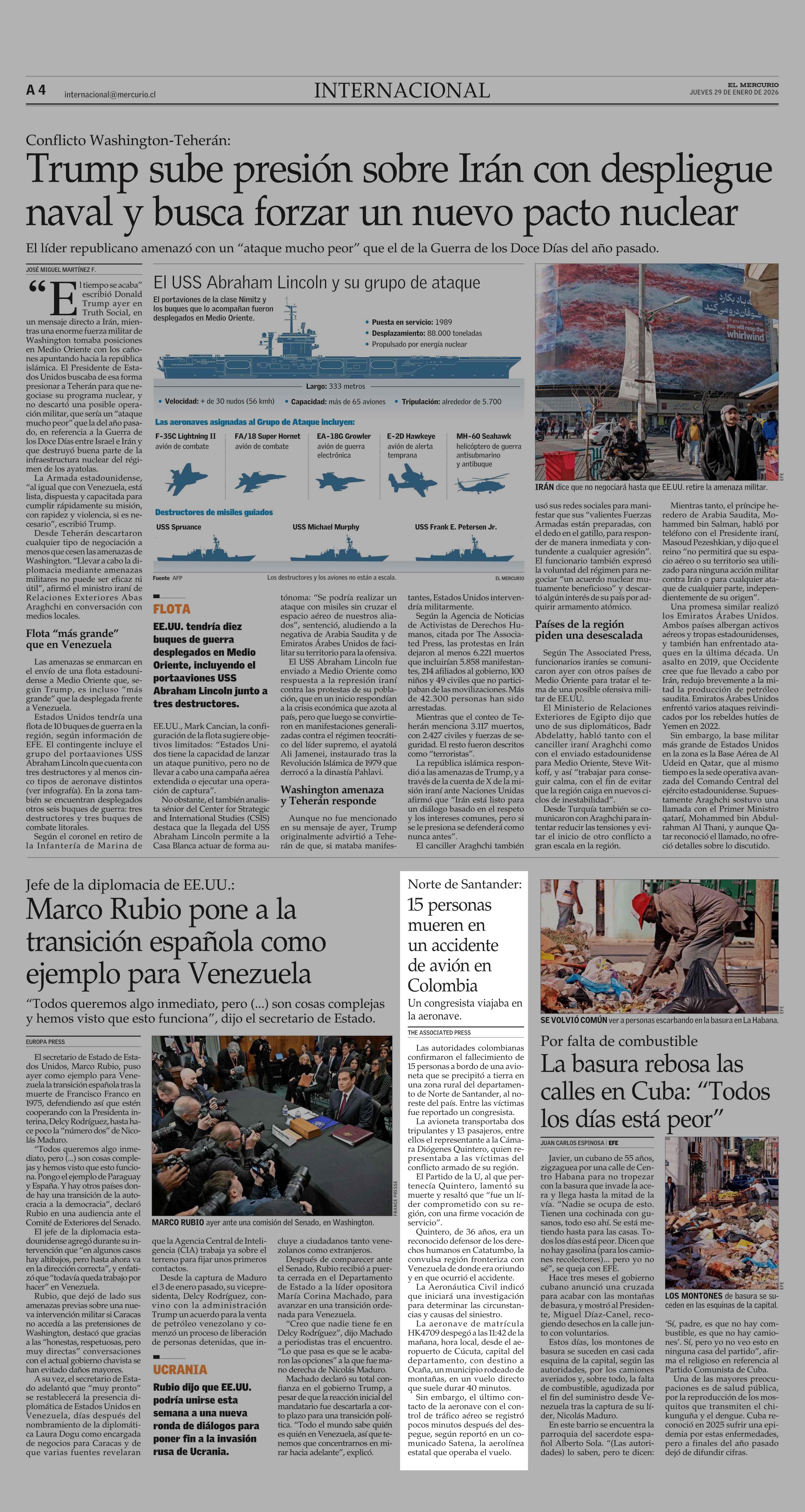 Norte de Santander: 15 personas mueren en un accidente de avión en Colombia 29-01-2026 El Mercurio |