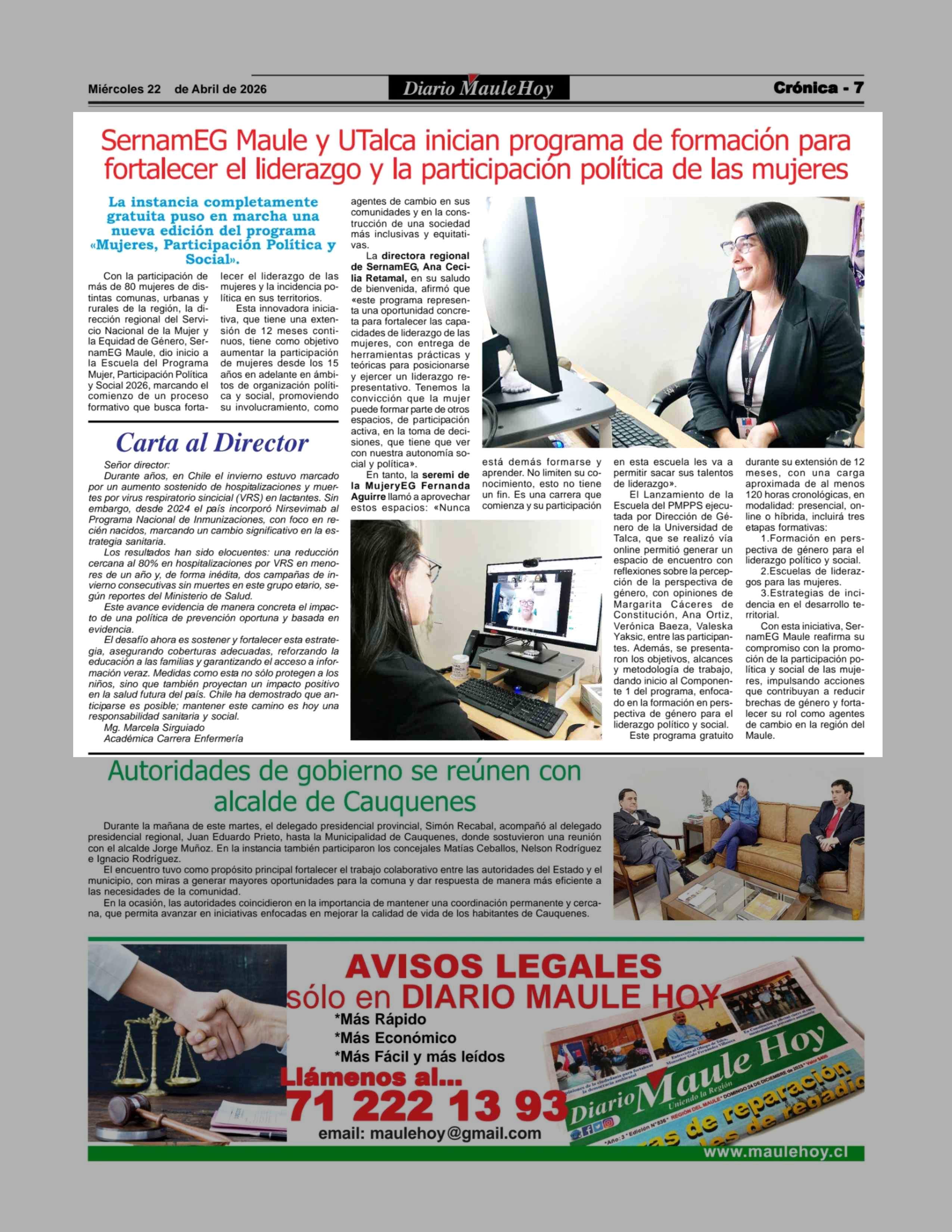 | Fecha: | 22-04-2026 | Sector: | Noticia general | Región: | Región del Maule |