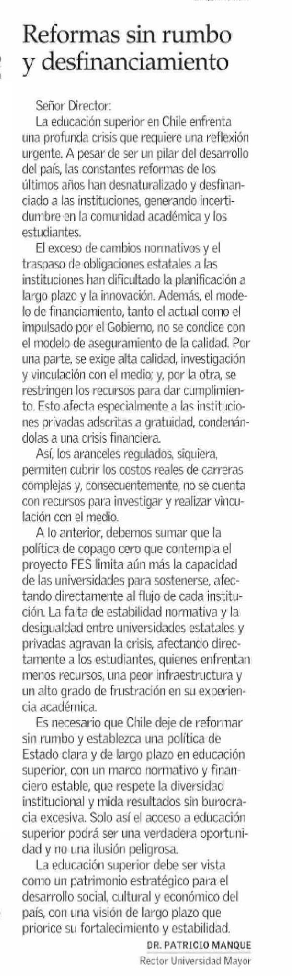 Reformas sin rumbo y desfinanciamiento 15-06-2025 El Mercurio |