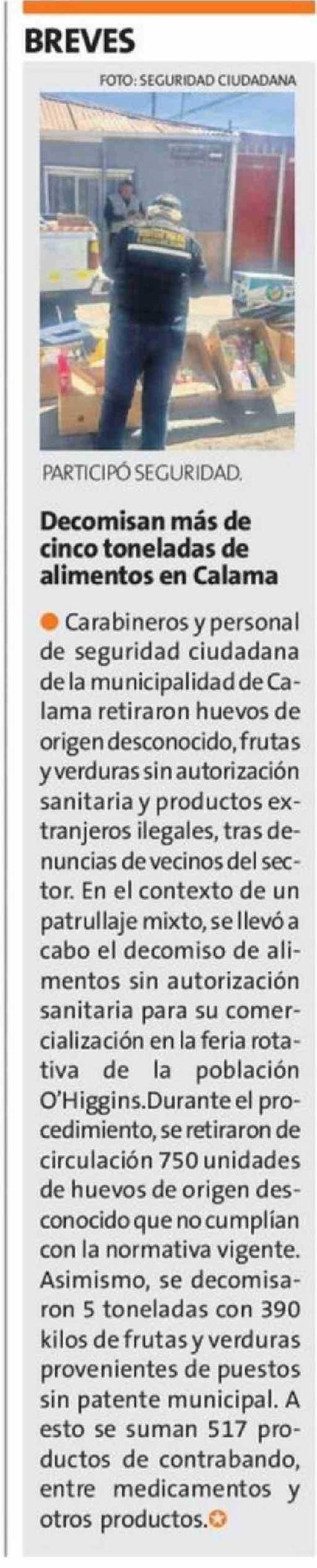 Título: Decomisan más de cinco toneladas de alimentos en Calama