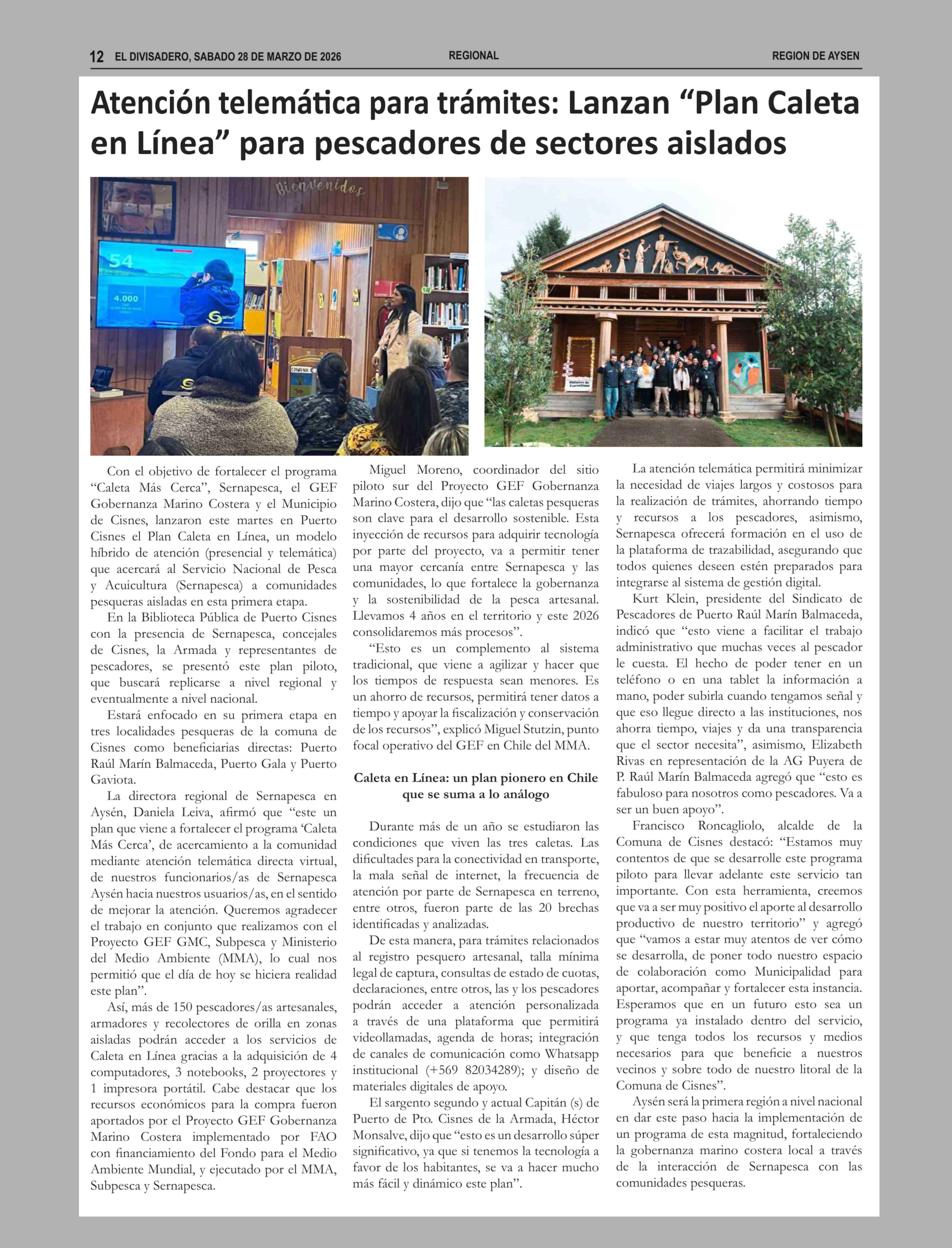 Atención telemática para trámites: Lanzan "Plan Caleta en Línea" para pescadores de sectores aislados 28-03-2026 El Divisadero |