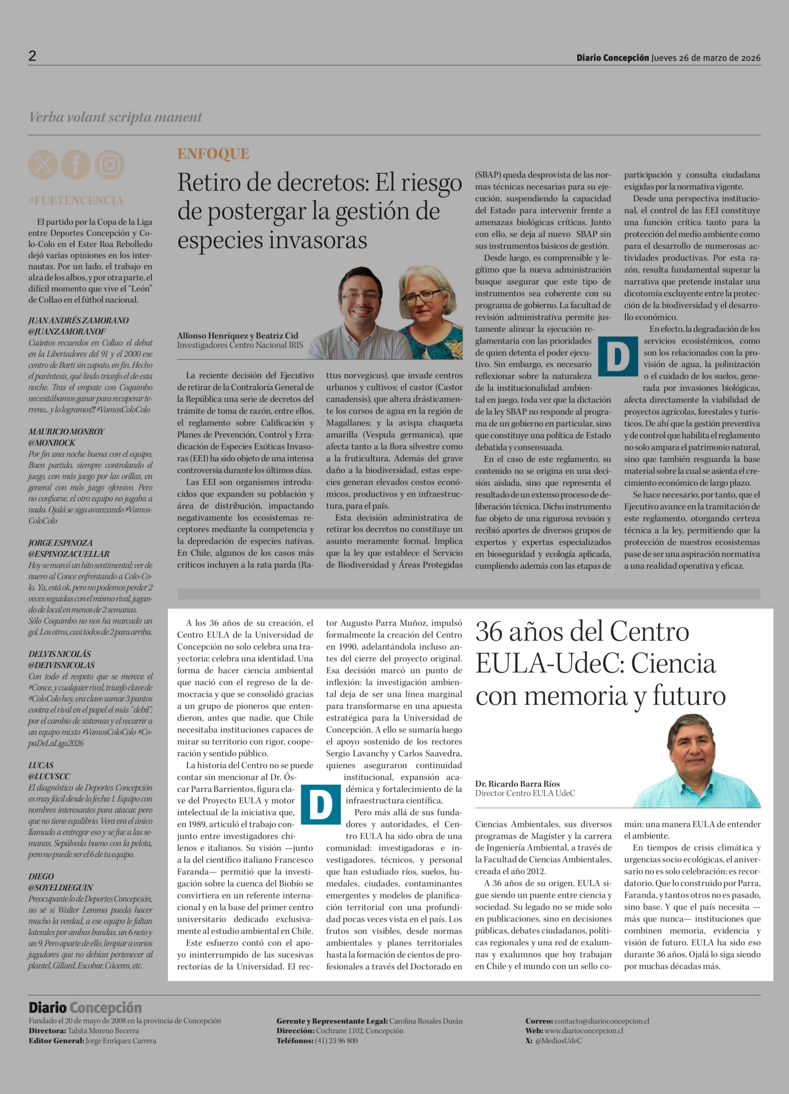 Título: Columnas de Opinión: 36 Años del Centro EULA-UdeC: Ciencia con memoria y futuro