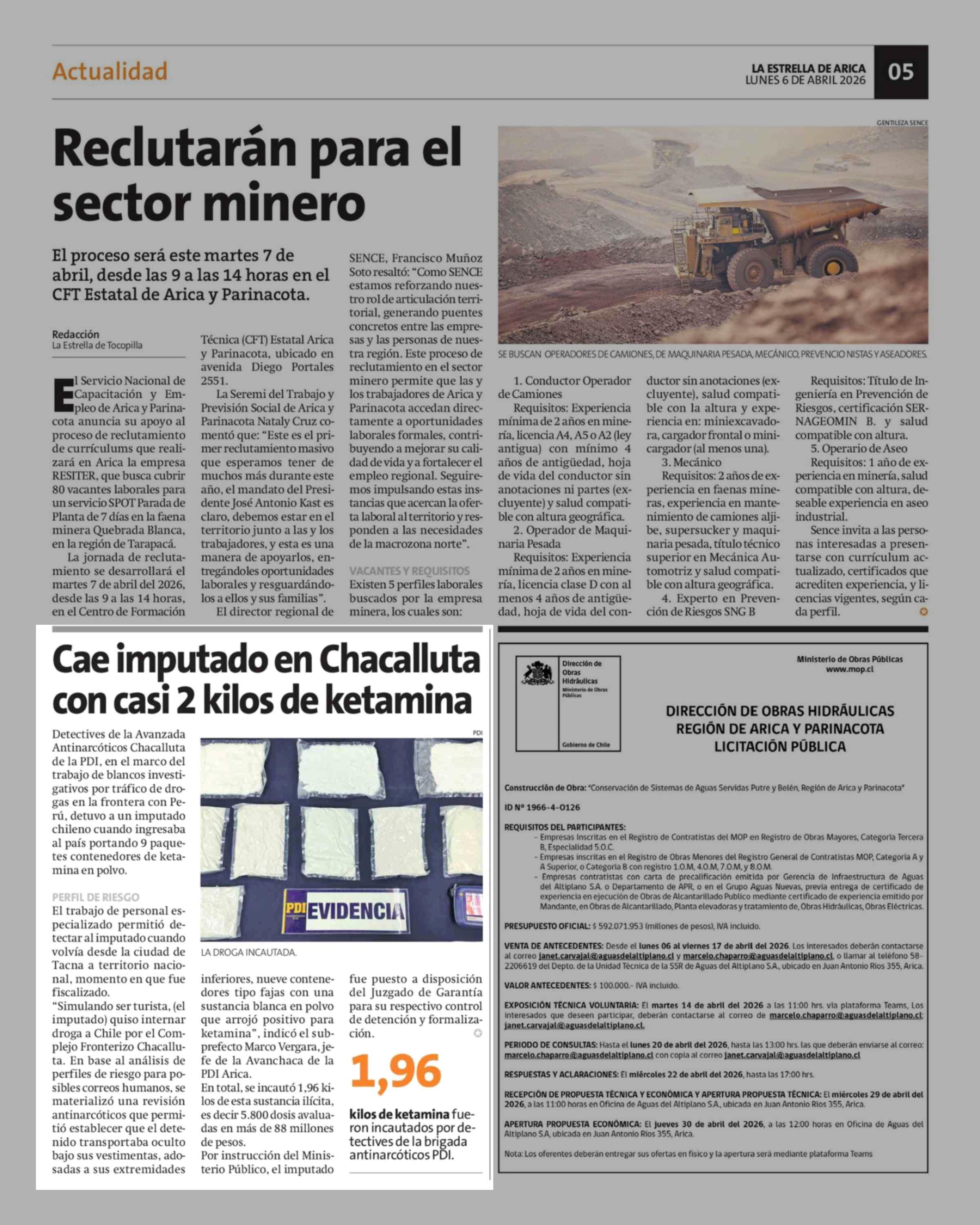 Fecha: 06-04-2026 Sector: Noticia general Región: Región de Arica y Parinacota