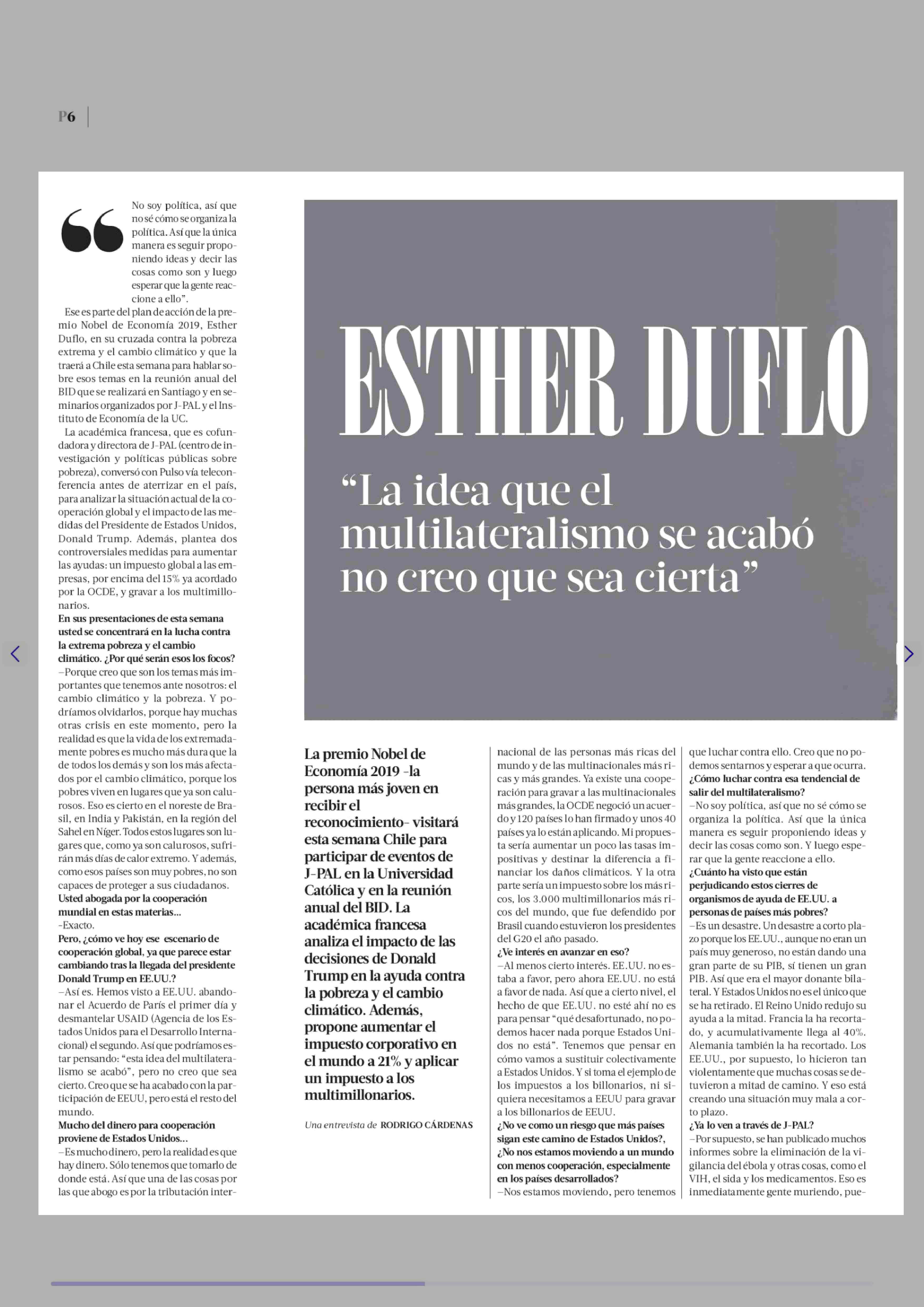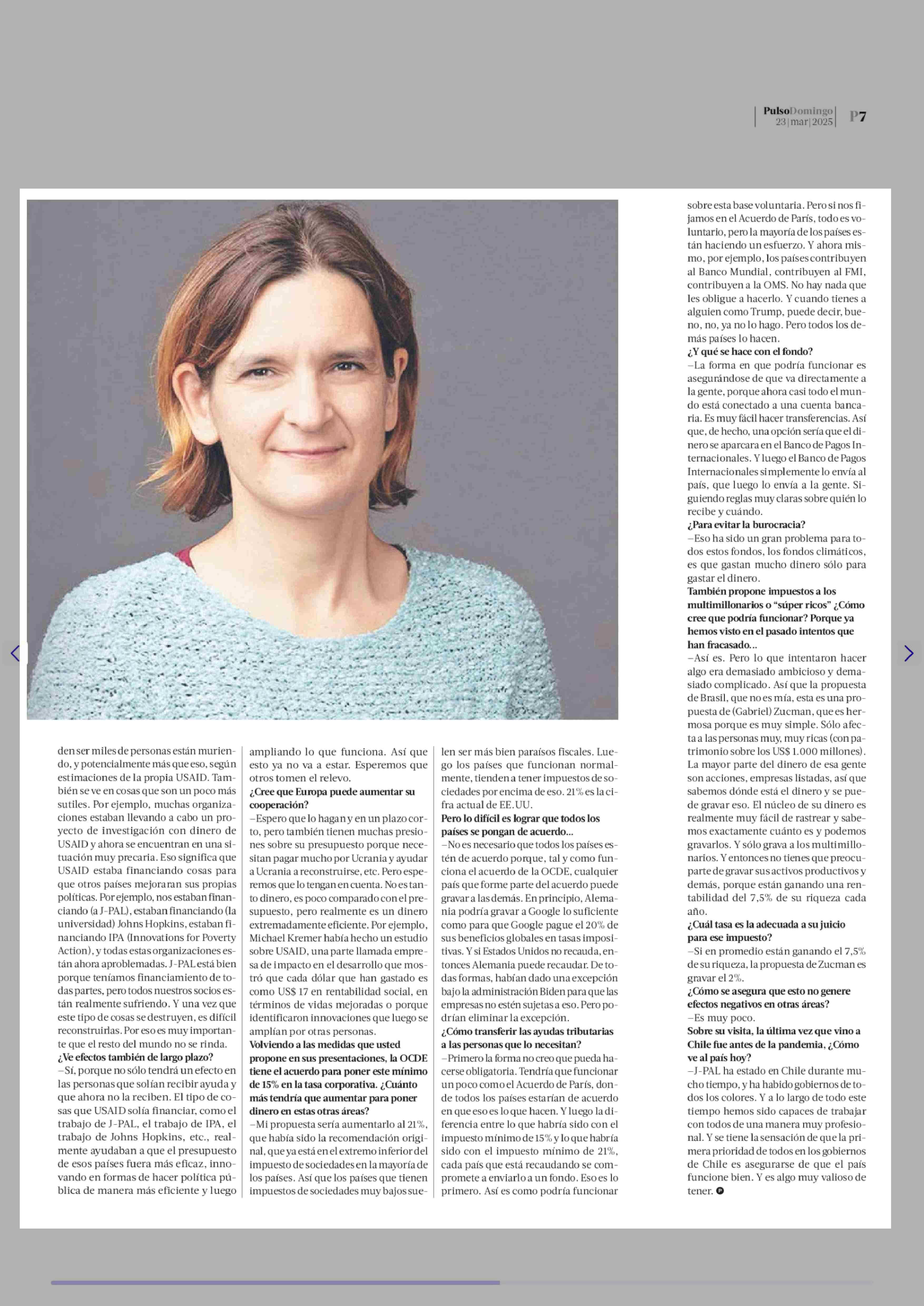 ESTHER DUFLO “La idea que el multilateralismo se acabó no creo que sea cierta” 23-03-2025 La Tercera |