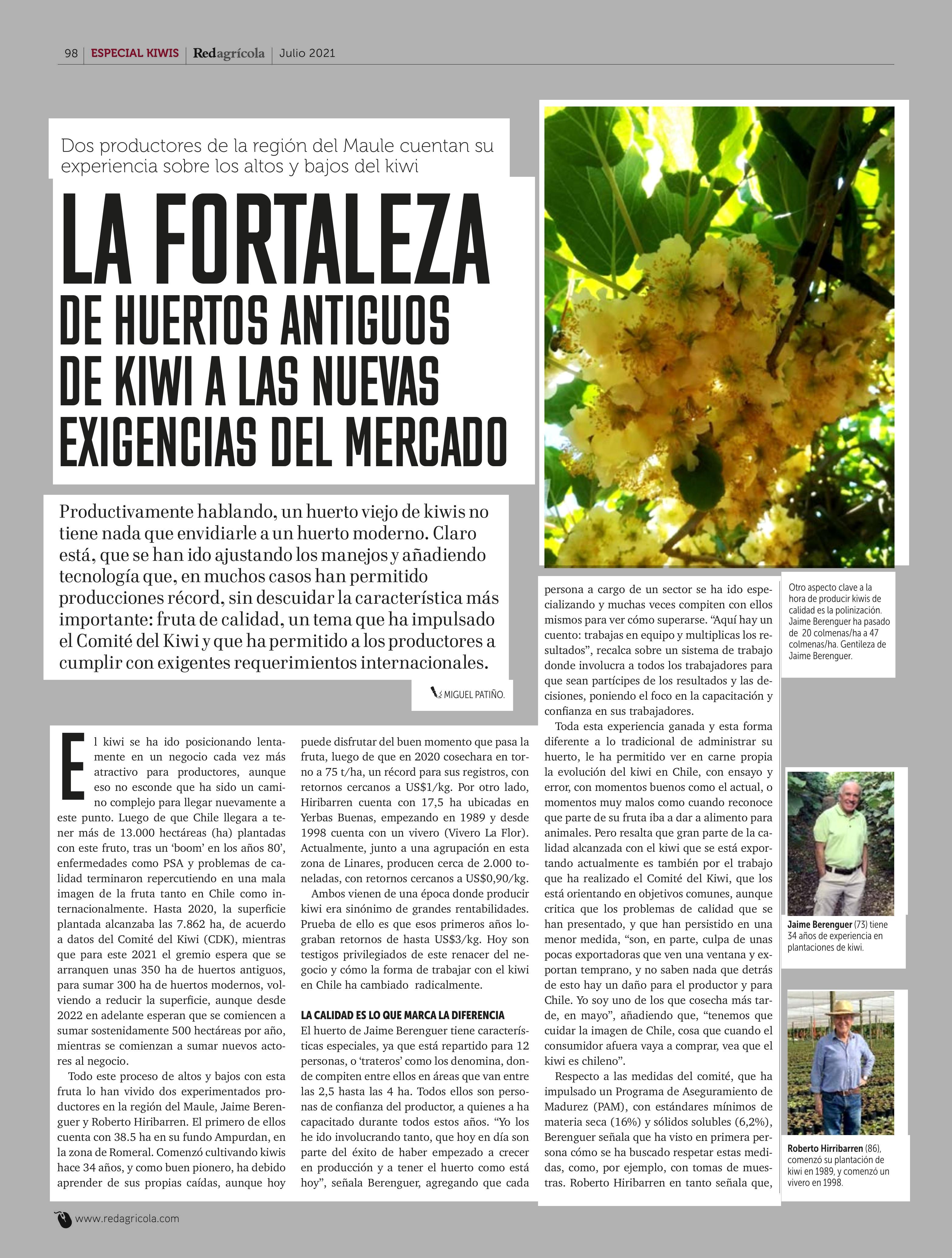 LA FORTALEZA DE HUERTOS ANTIGUOS DE KIWI A LAS NUEVAS EXIGENCIAS DEL MERCADO 19-07-2021 Revista Redagrícola |