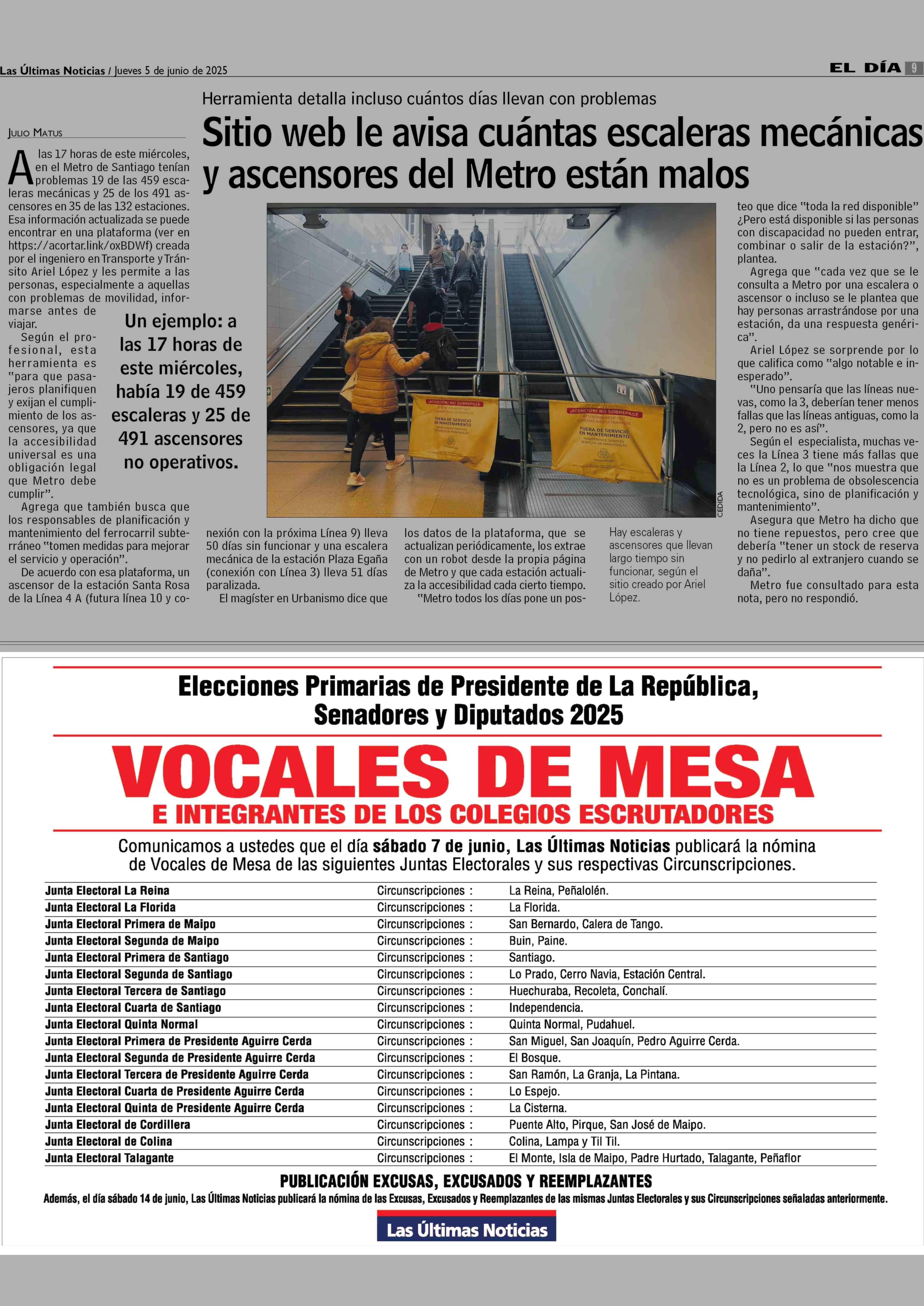 EXTRACTOS: VOCALES DE MESA E INTEGRANTES DE LOS COLEGIOS ESCRUTADORES 05-06-2025 Las Últimas Noticias |