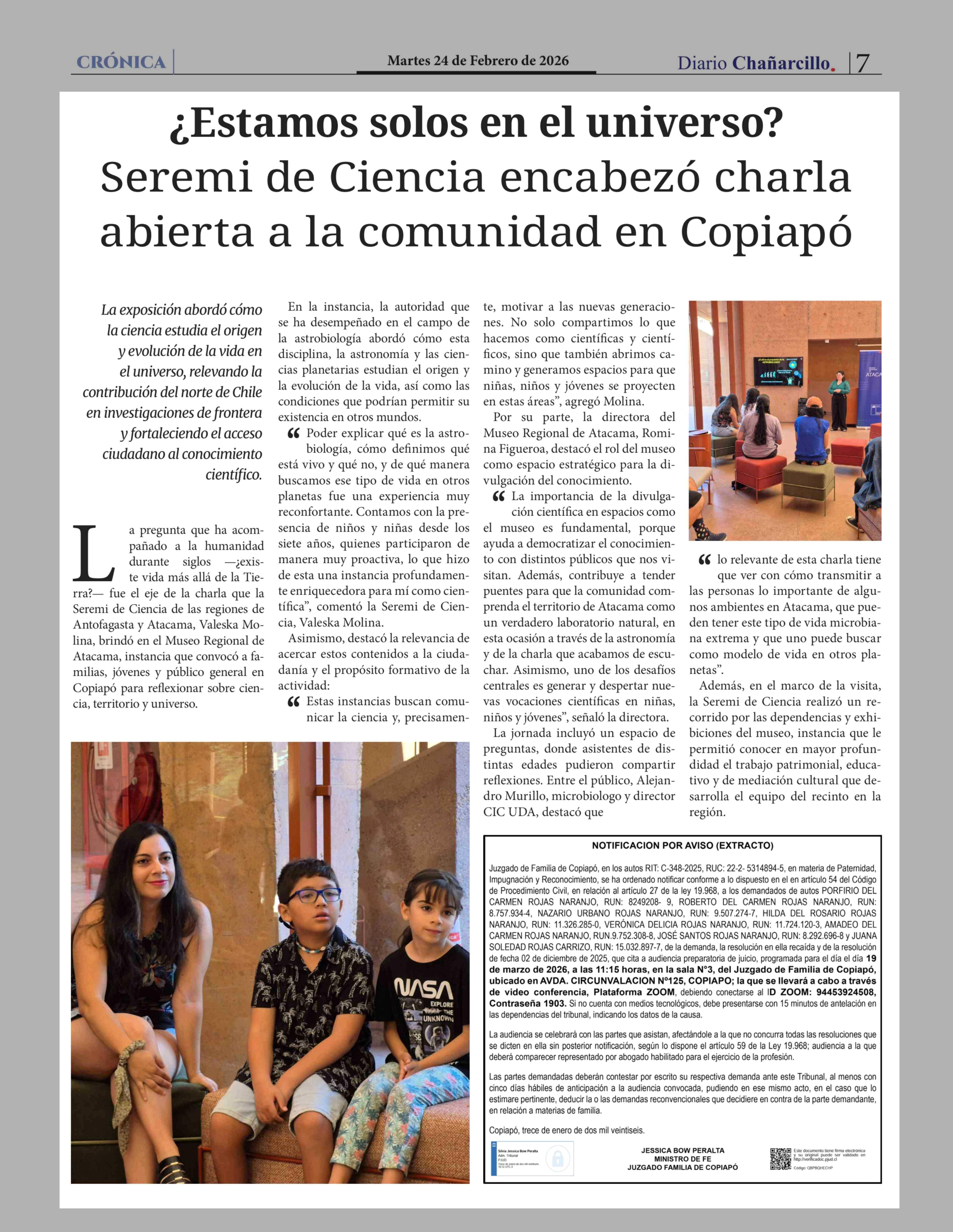 Fecha: 24-02-2026 Sector: Noticia general Región: Región de Atacama