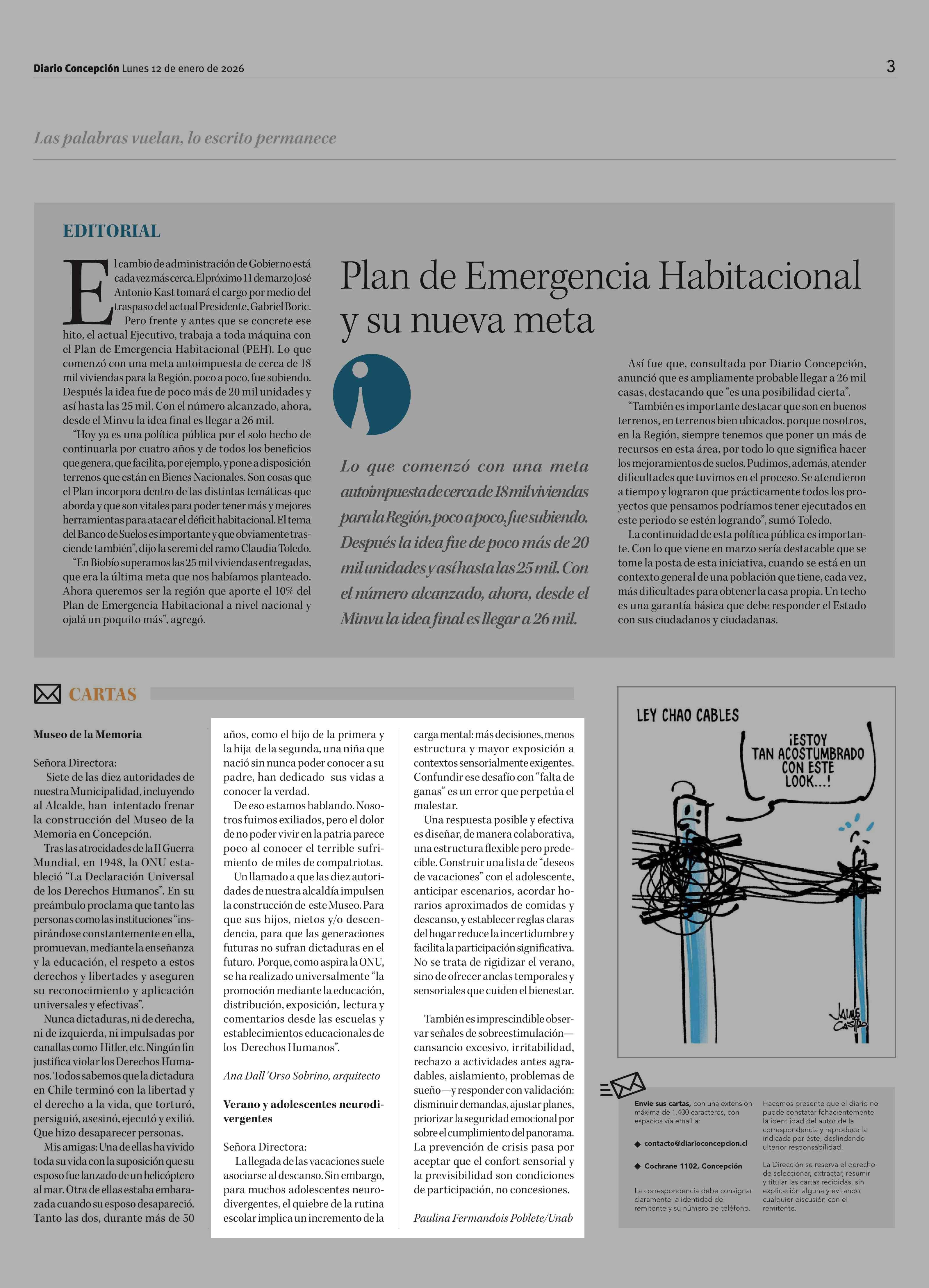 Cartas: Verano y adolescentes neurodivergentes 12-01-2026 Diario Concepción |