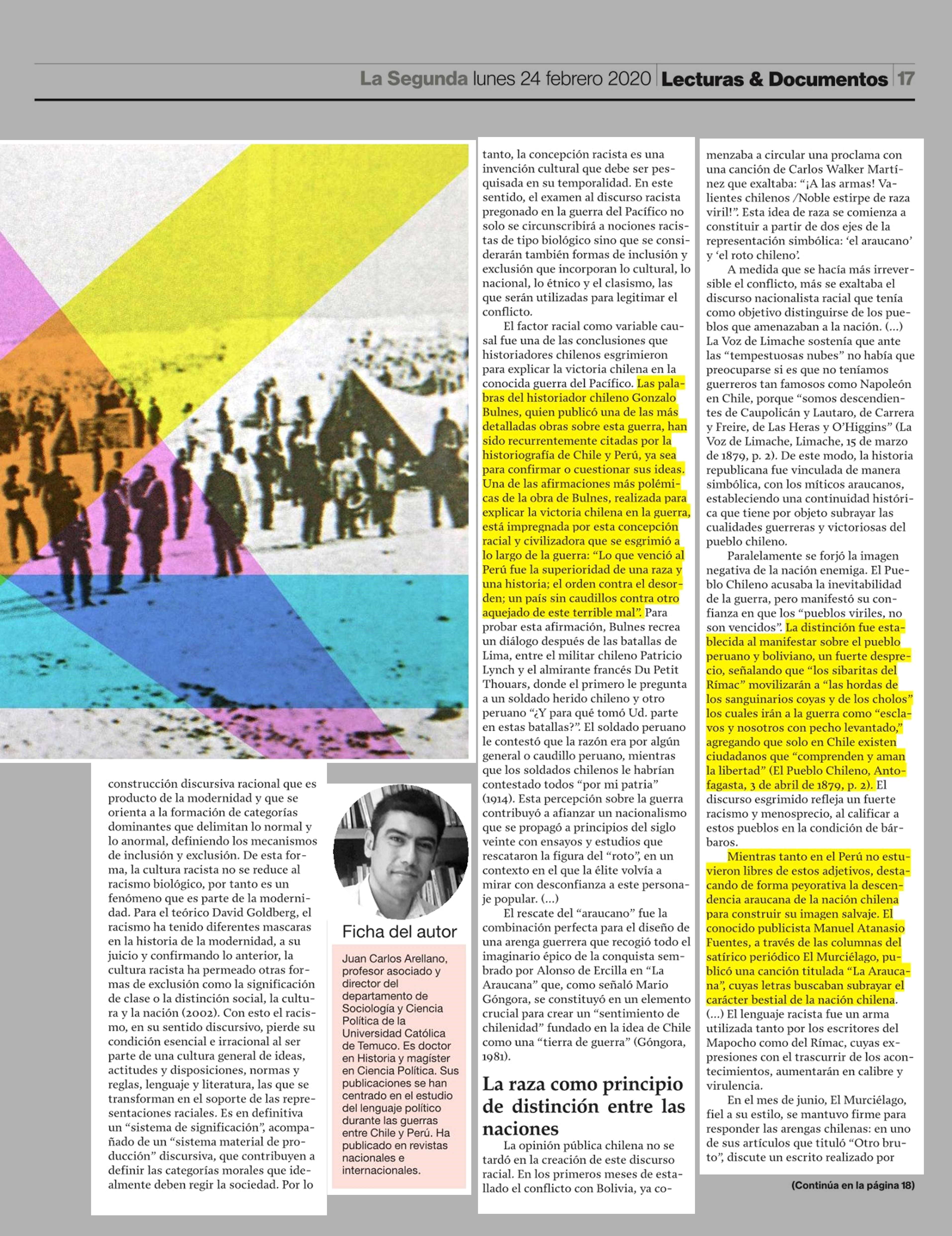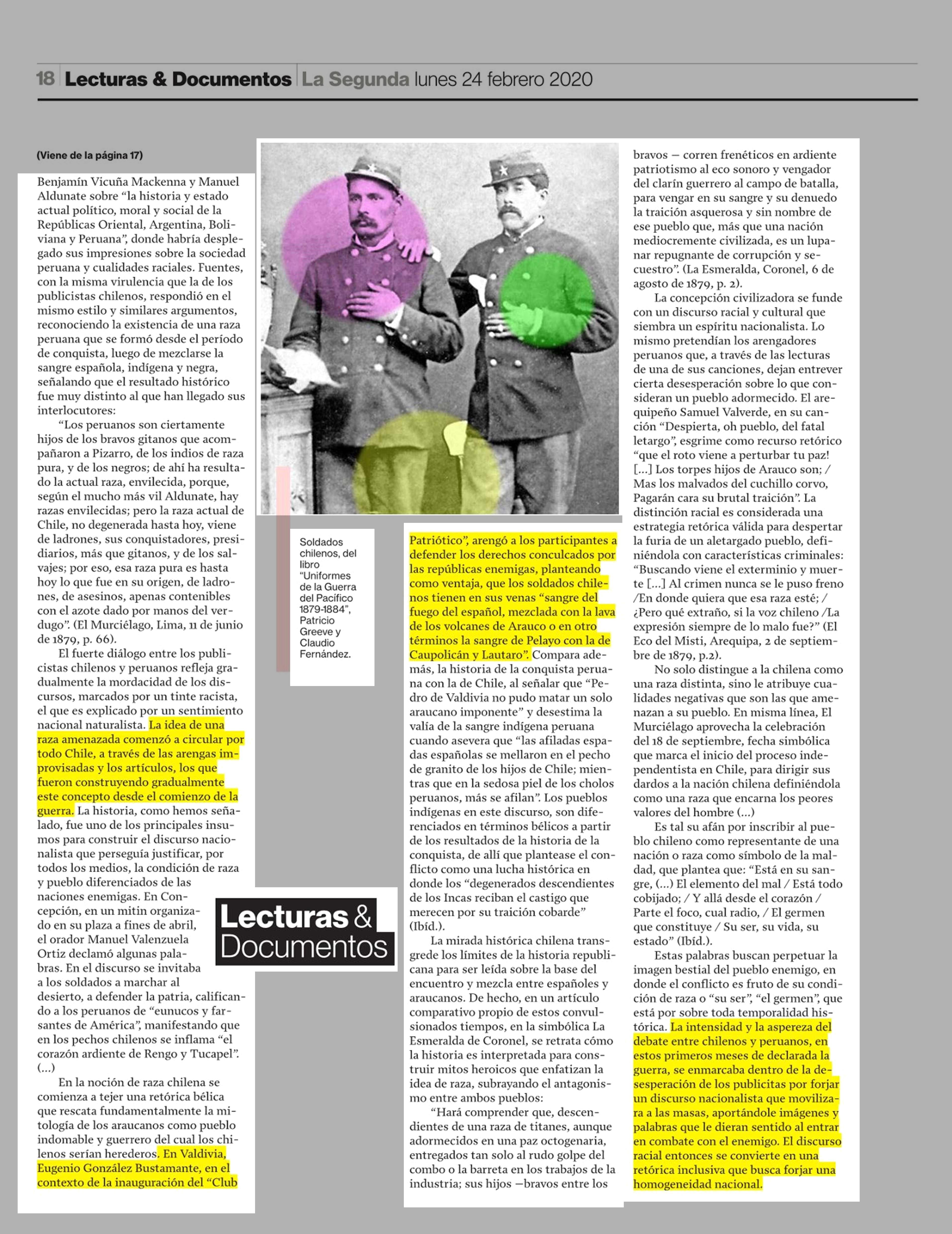 El 'roto' vs. el 'cholo’: El racismo en la Guerra del Pacífico 24-02-2020 La Segunda |