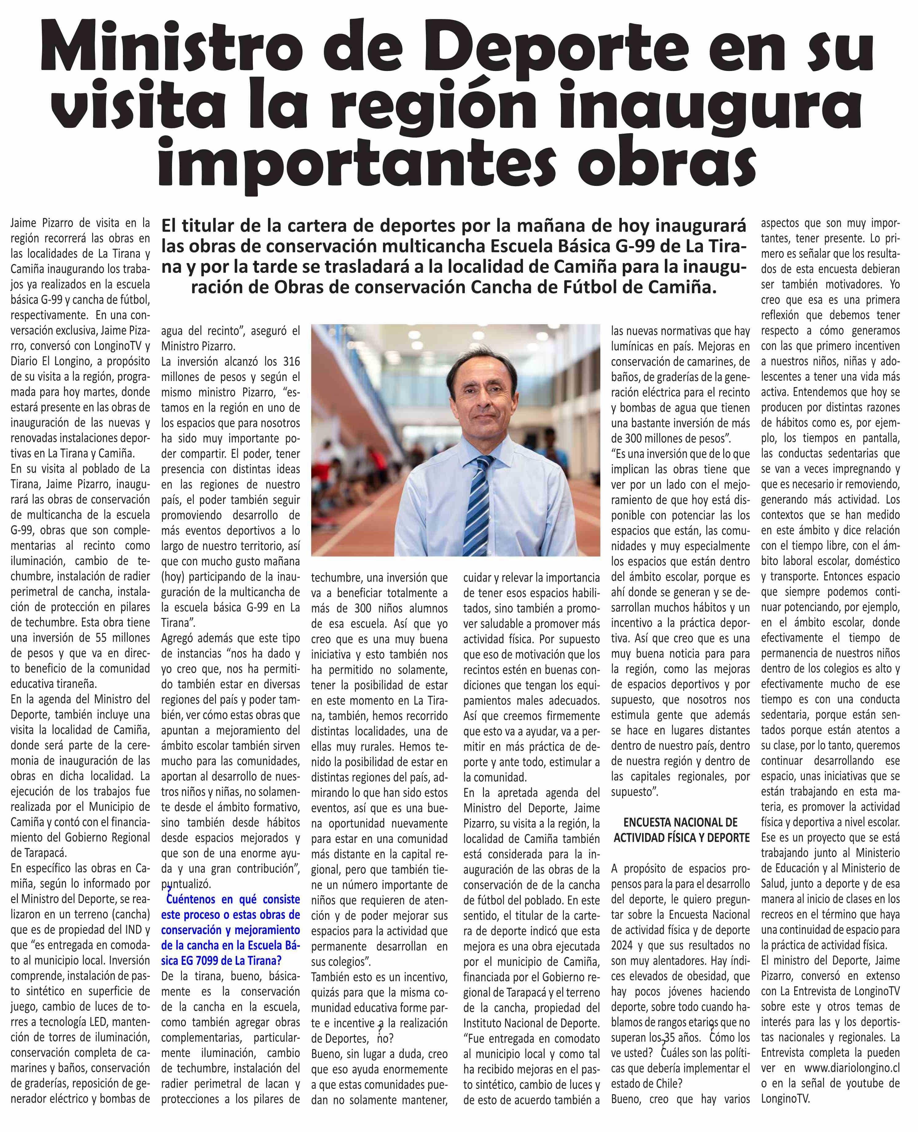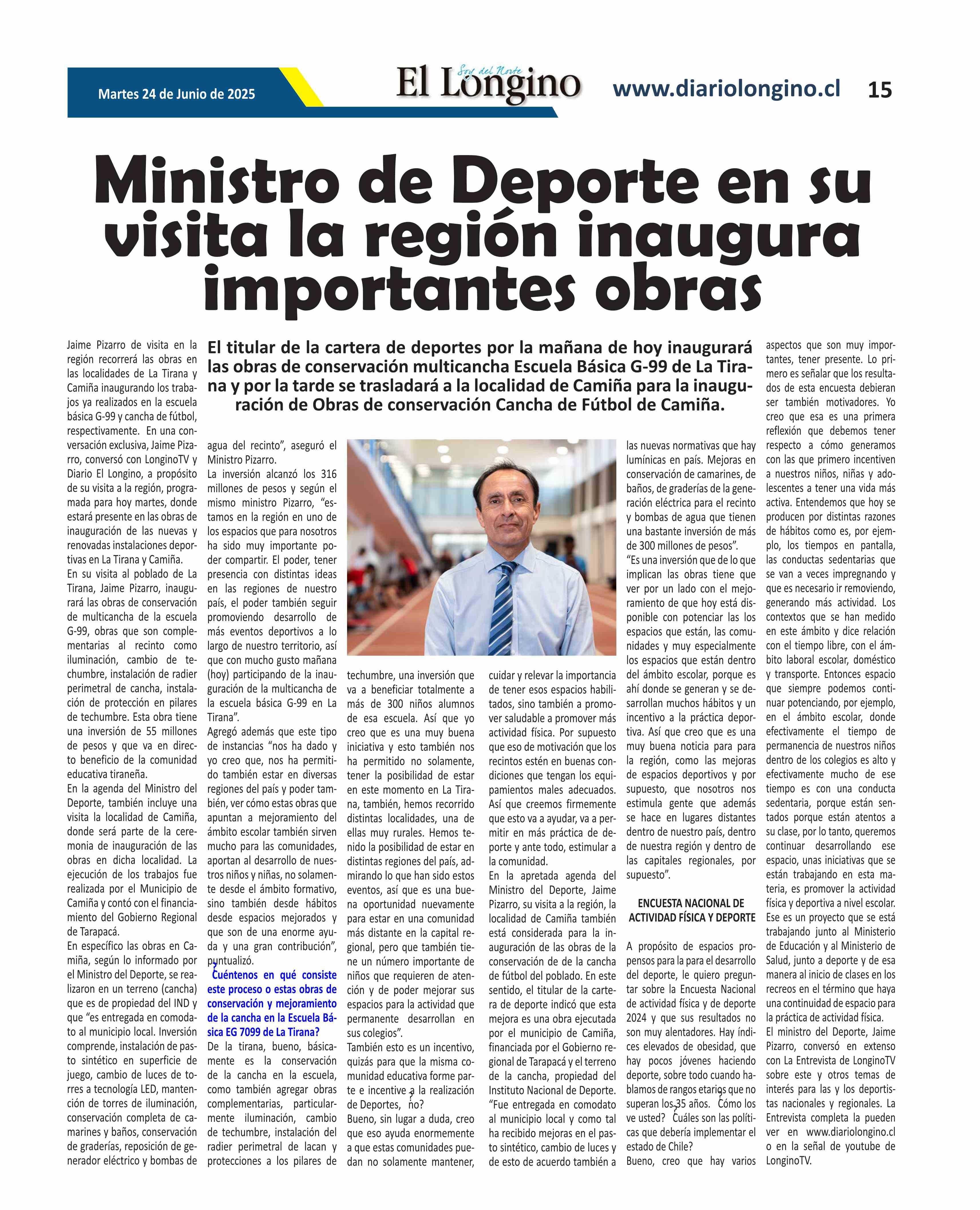 Ministro de Deporte en su visita la región inaugura importantes obras 24-06-2025 El Longino |