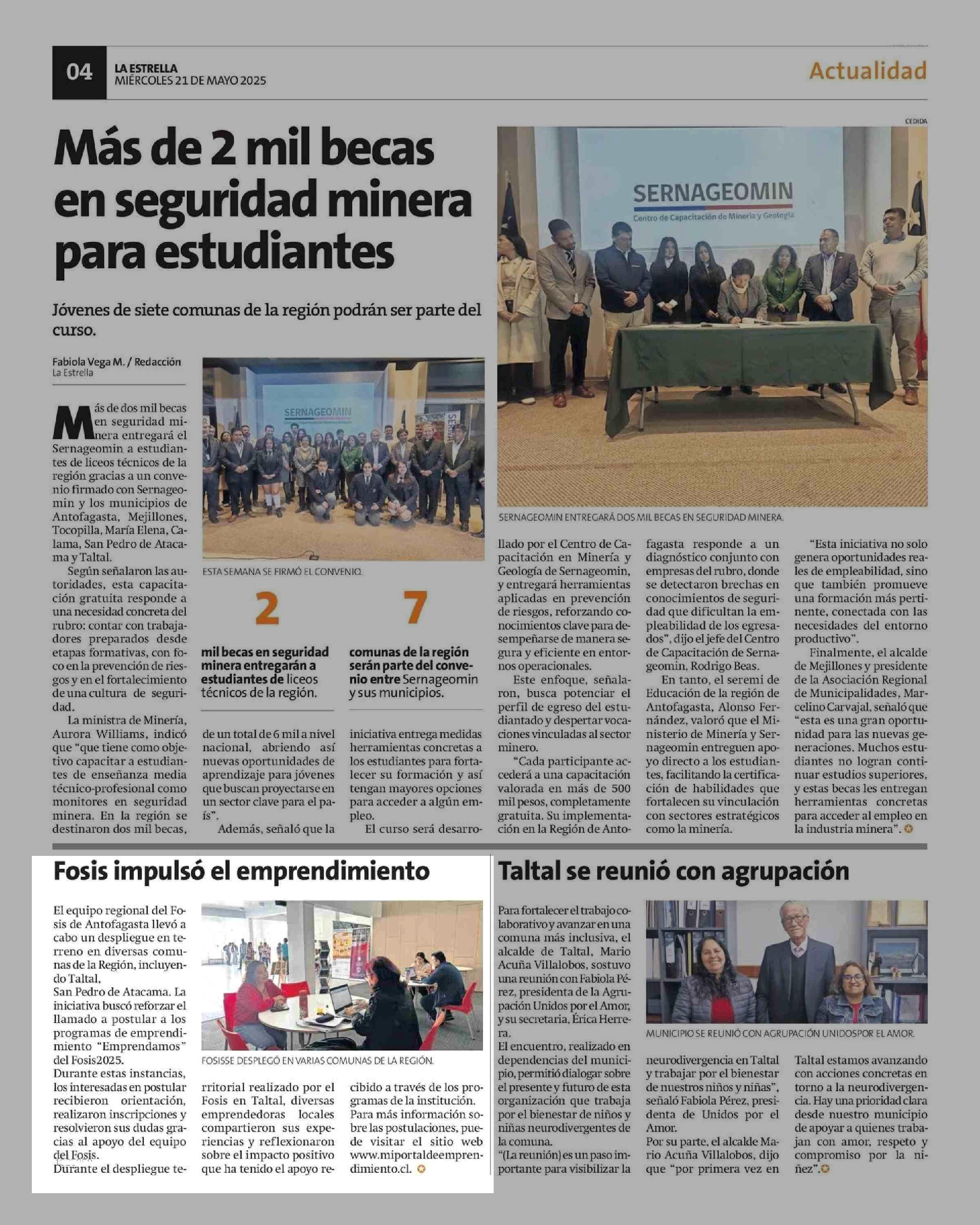 Fosis impulsó el emprendimiento 21-05-2025 La Estrella de Antofagasta |