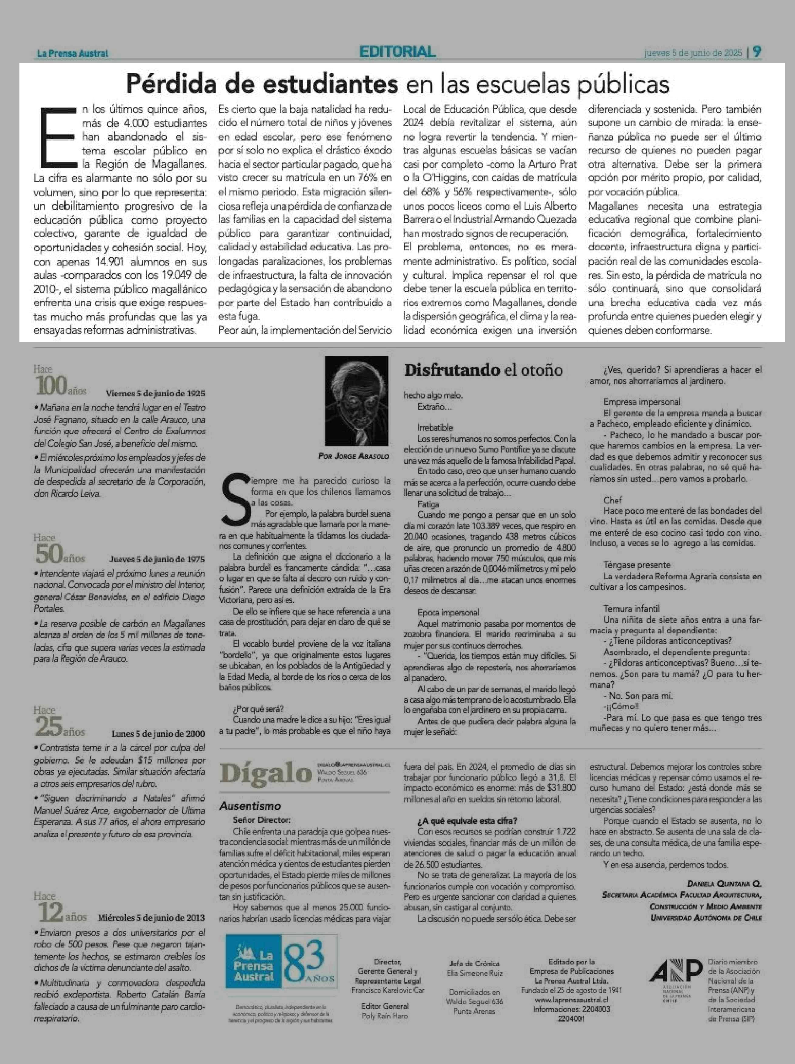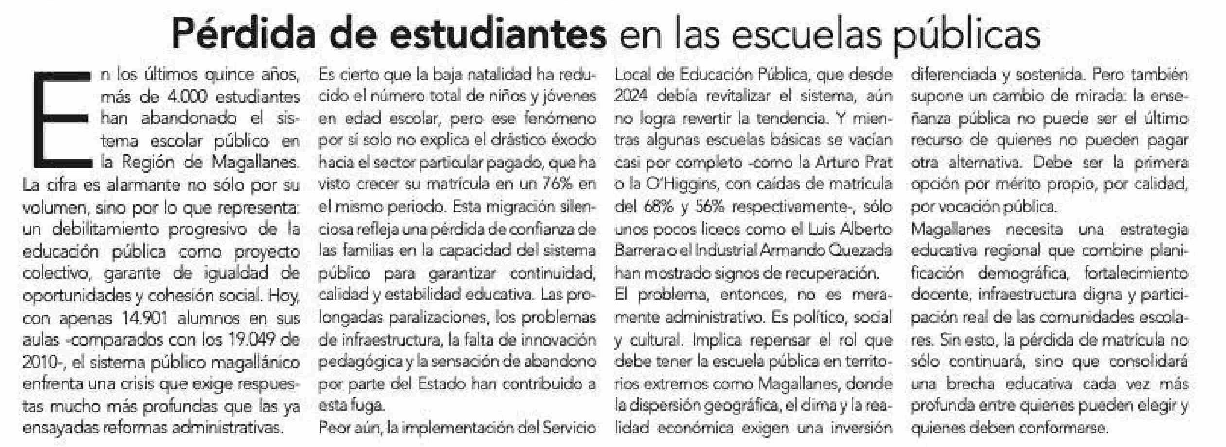 Pérdida de estudiantes en las escuelas públicas 05-06-2025 La Prensa Austral |