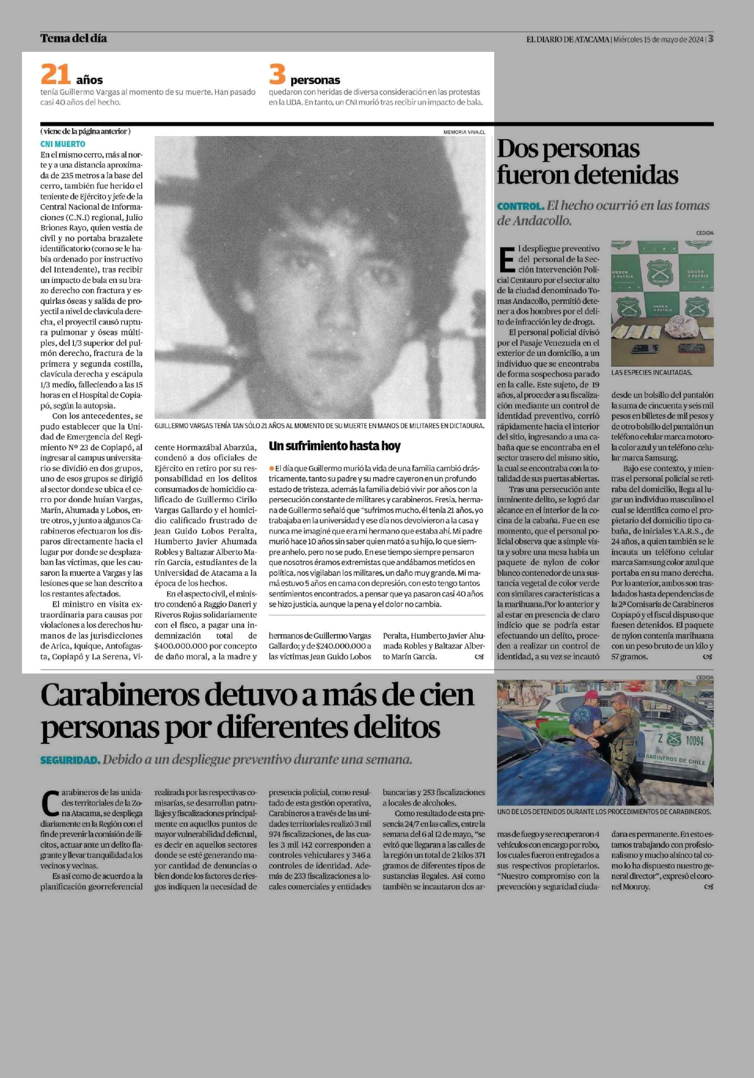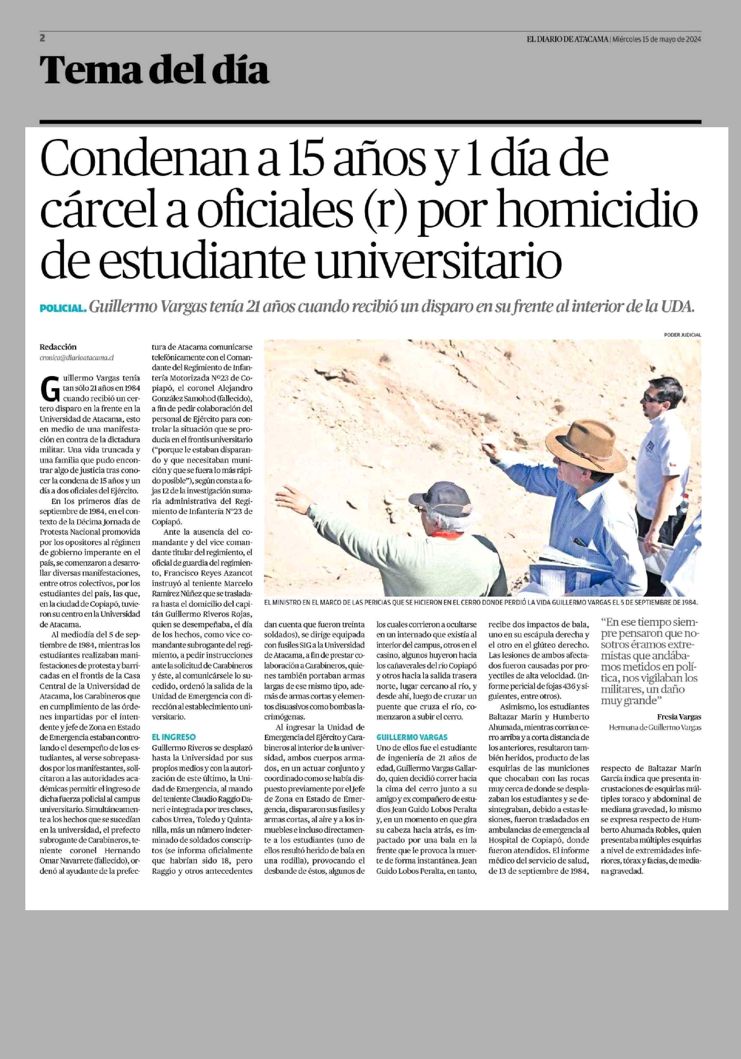 Condenan a 15 años y 1 día de cárcel a oficiales (r) por homicidio de estudiante universitario 15-05-2024 El Diario de Atacama |