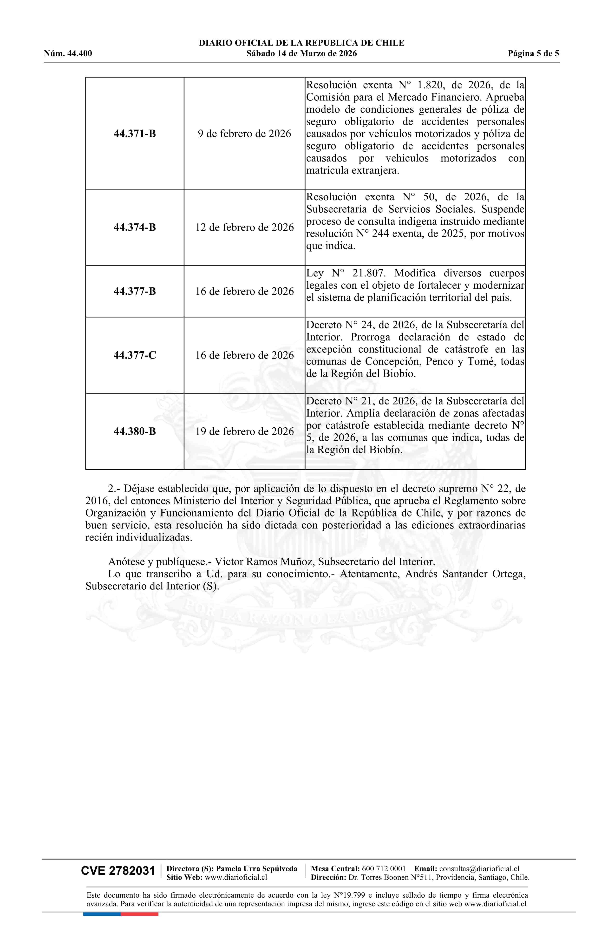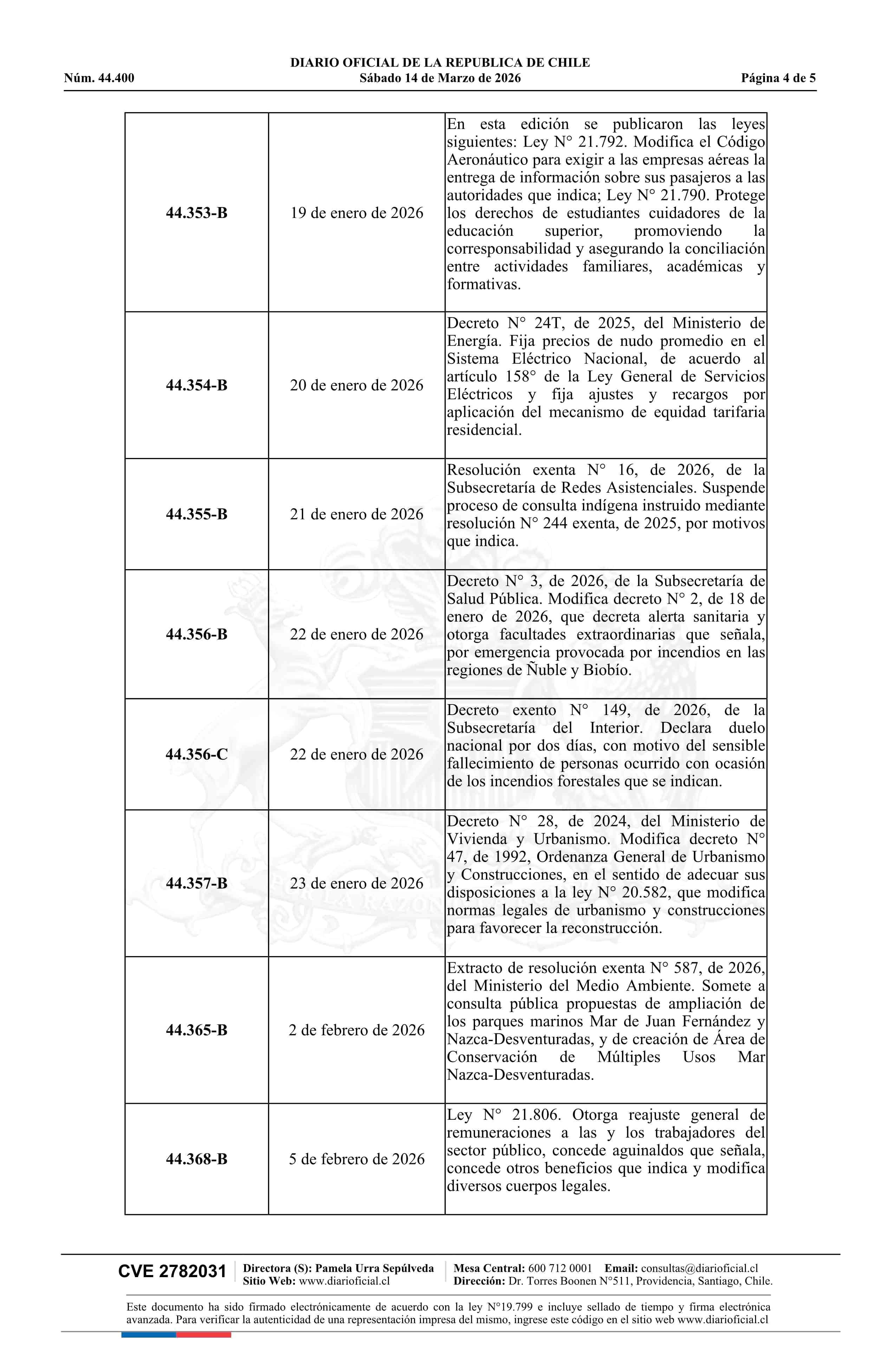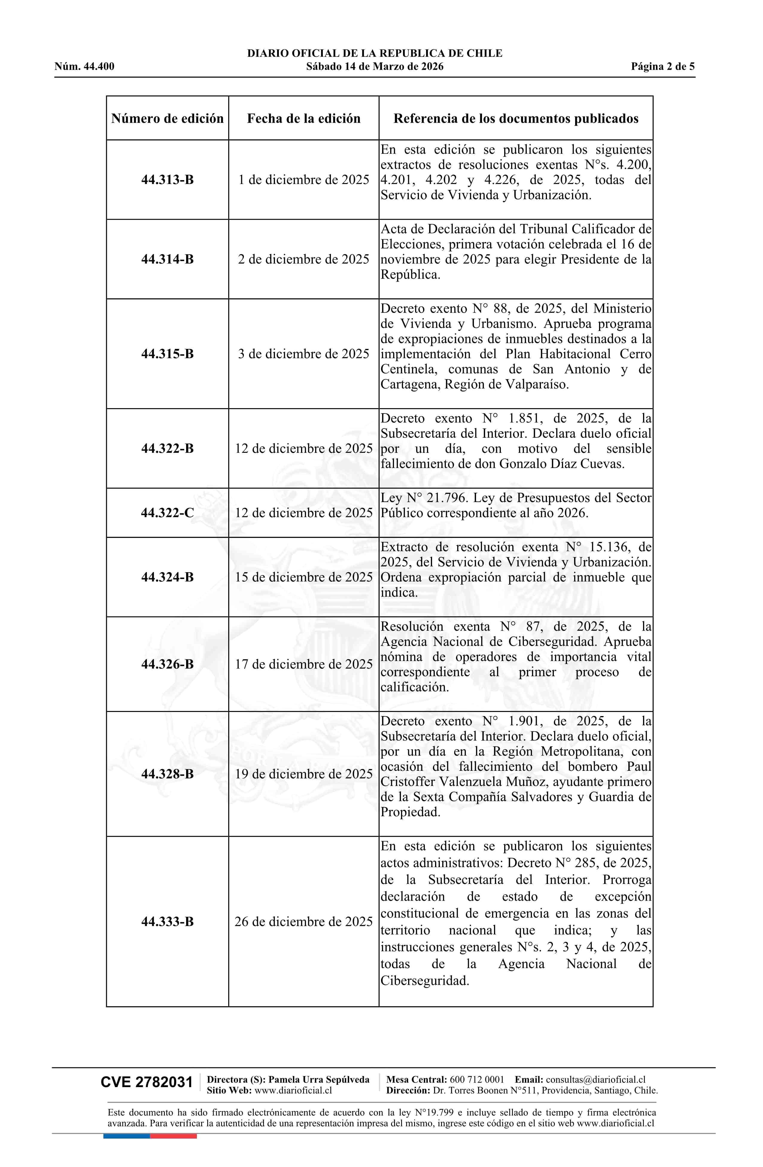 Fuente: Diario Oficial Edición Electrónica (Diario Oficial de Chile - 1 Normas Generales) Página(s): 3-7