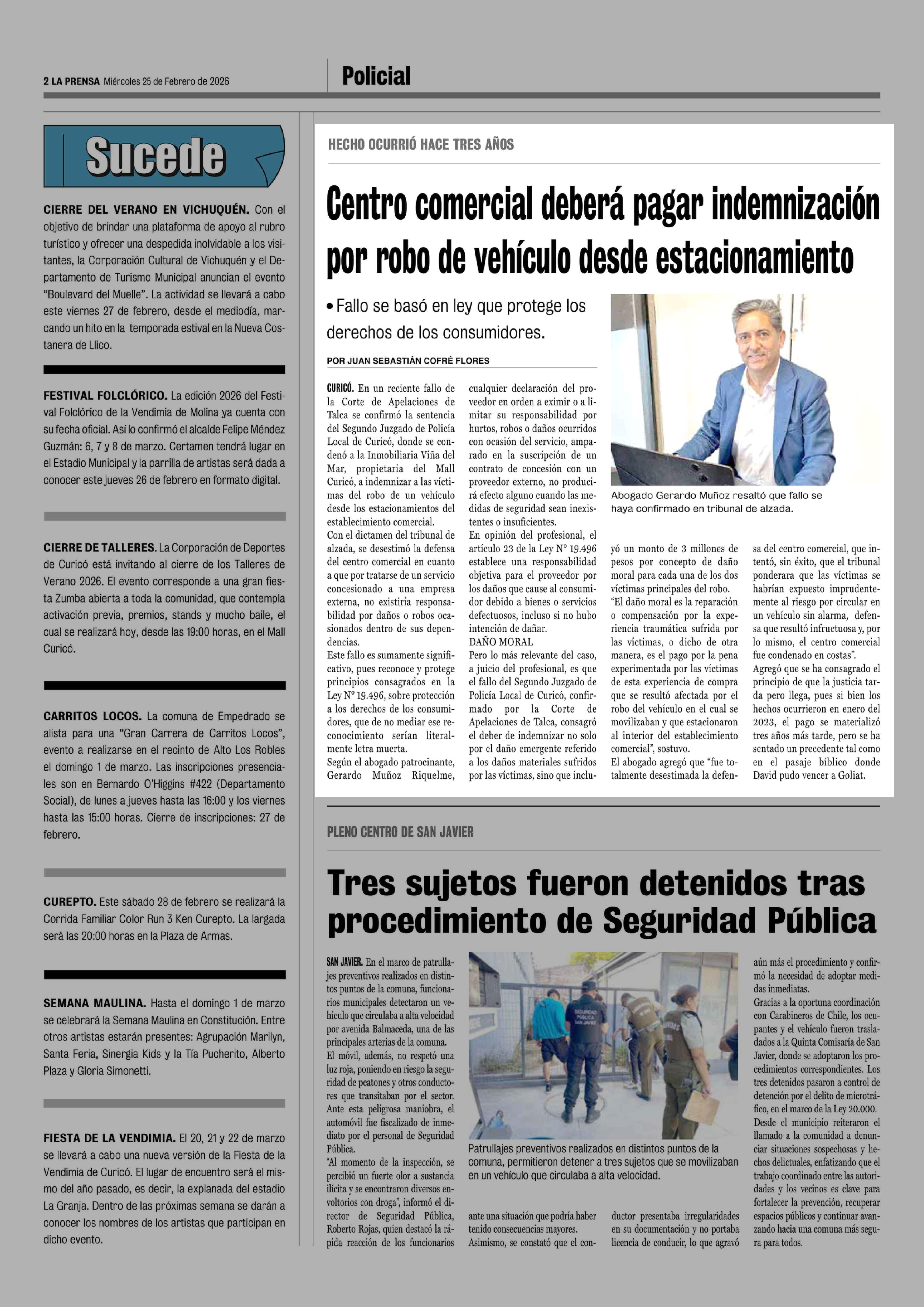 Centro comercial deberá pagar indemnización por robo de vehículo desde estacionamiento 25-02-2026 La Prensa de Curicó |
