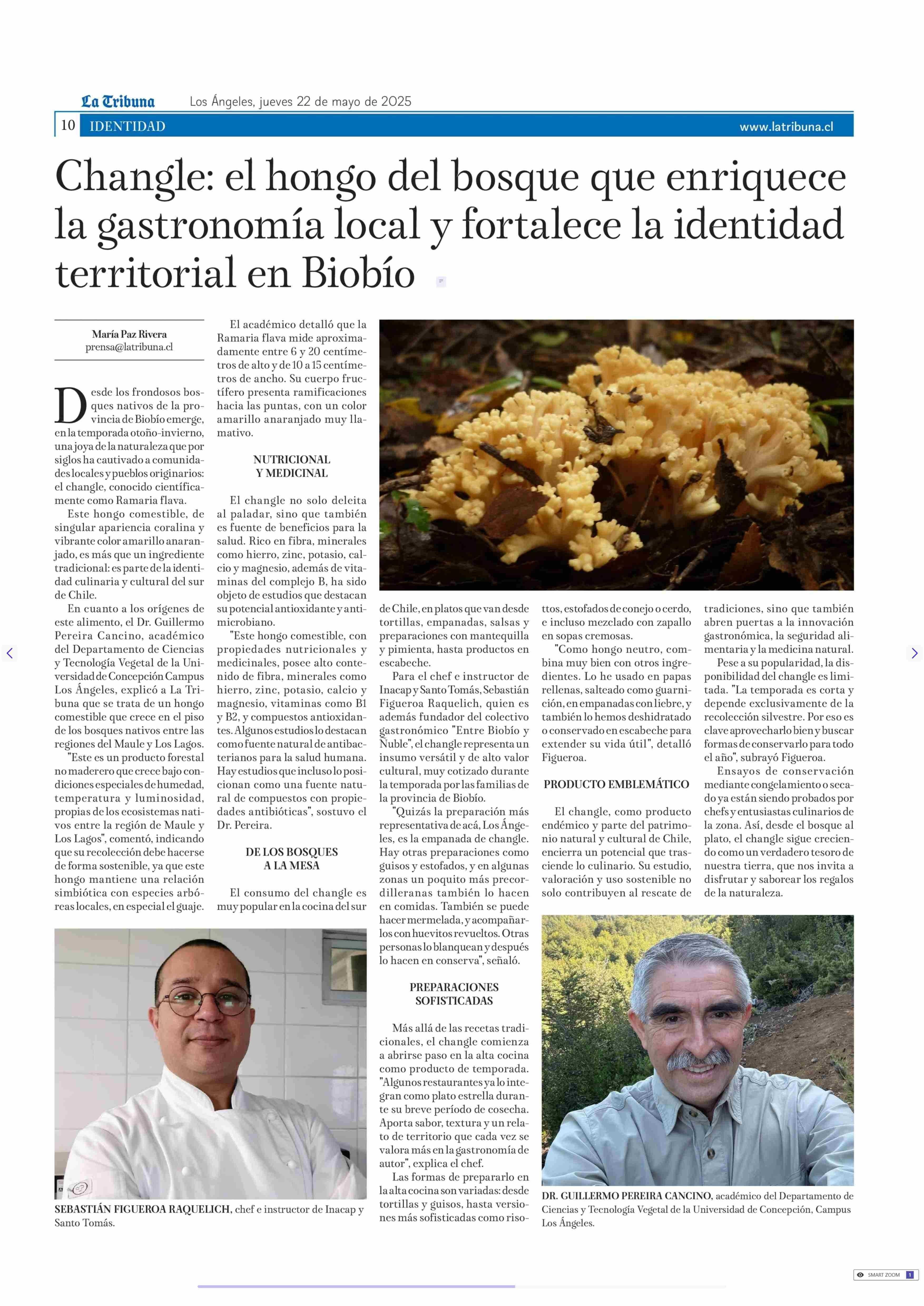 Changle: el hongo del bosque que enriquece la gastronomía local y fortalece la identidad territorial en Biobío 22-05-2025 La Tribuna |