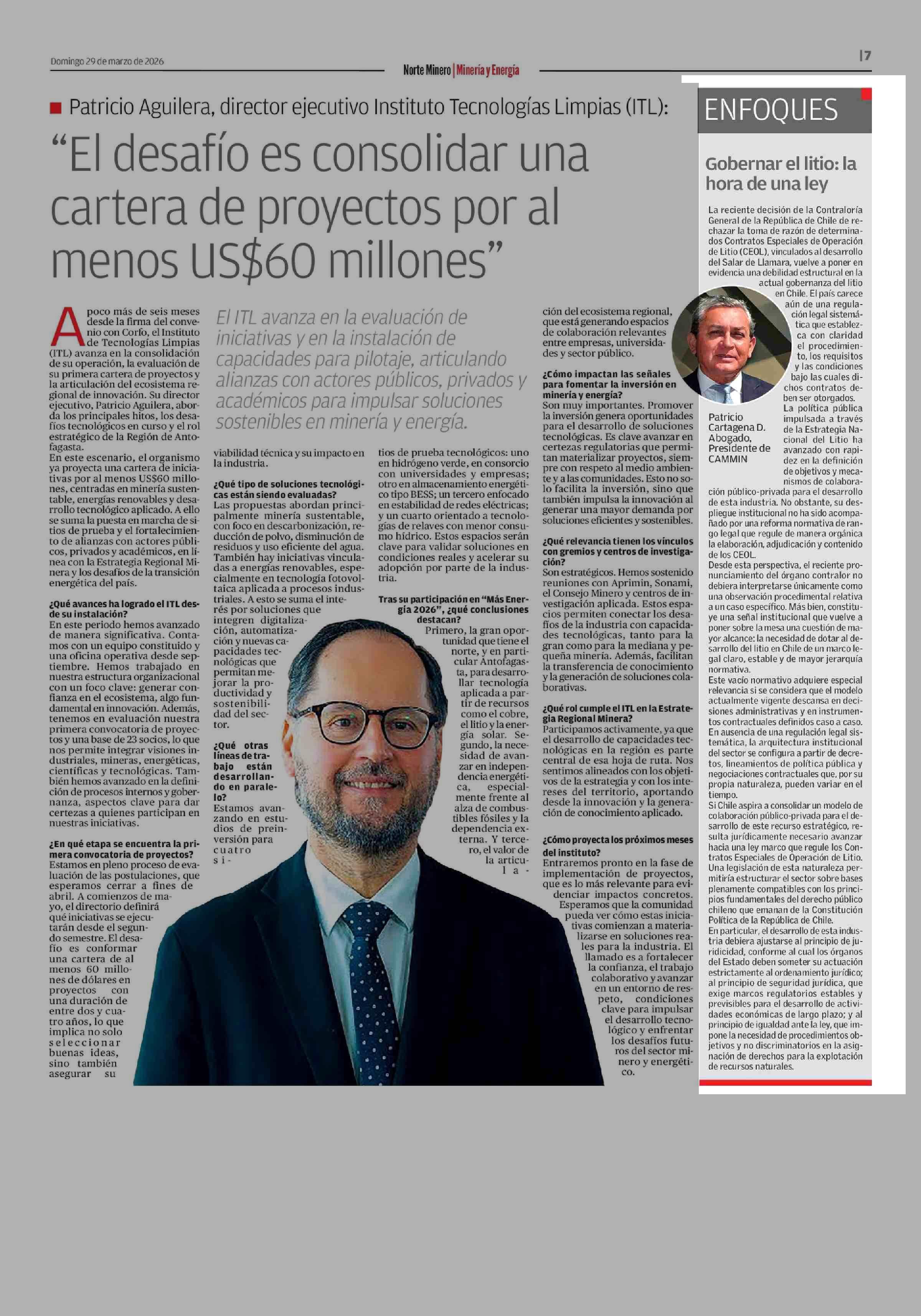 COLUMNAS DE OPINIÓN: la hora de una ley 29-03-2026 El Mercurio de Calama |