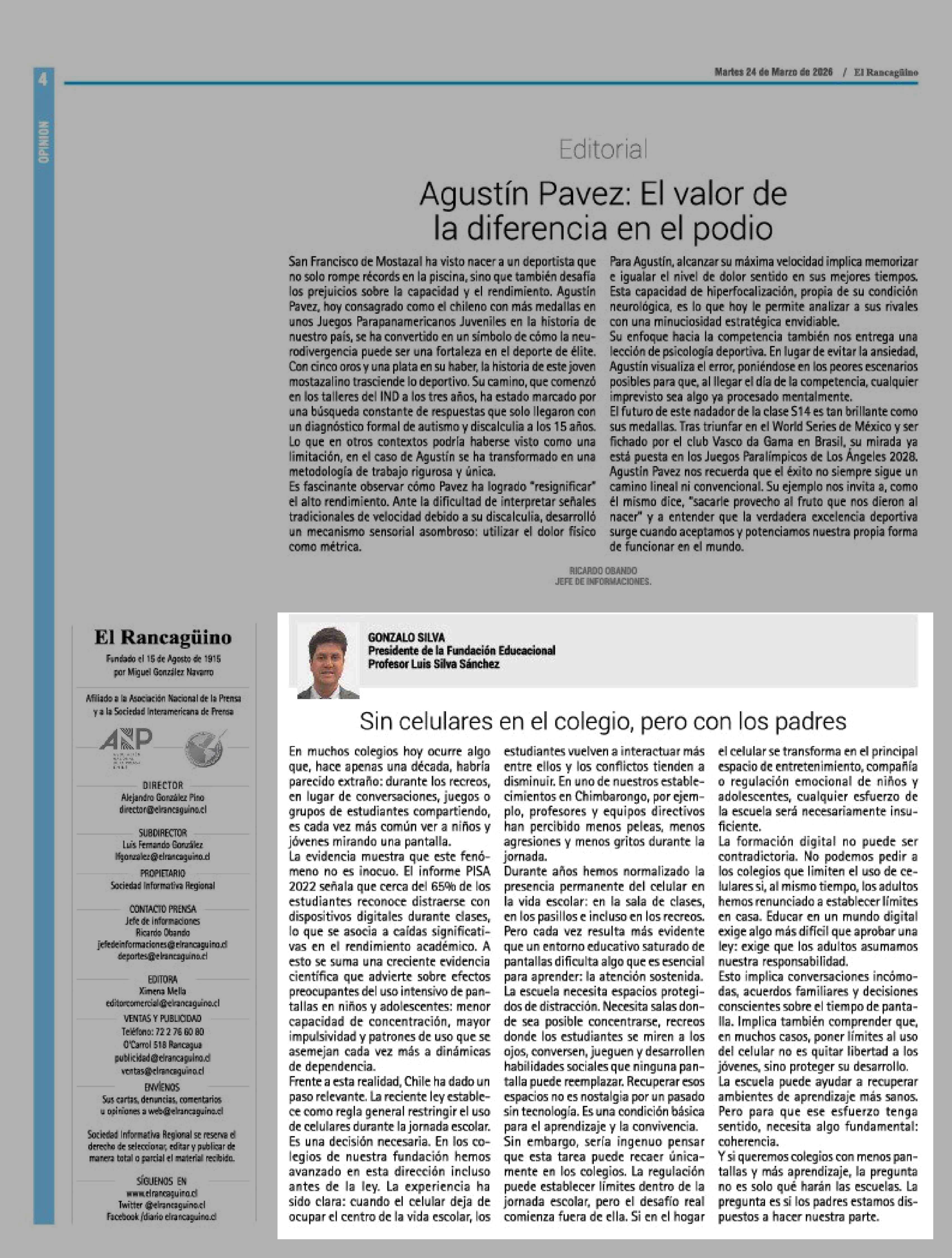 Columnas de Opinión: Sin celulares en el colegio, pero con los padres 24-03-2026 El Rancagüino |