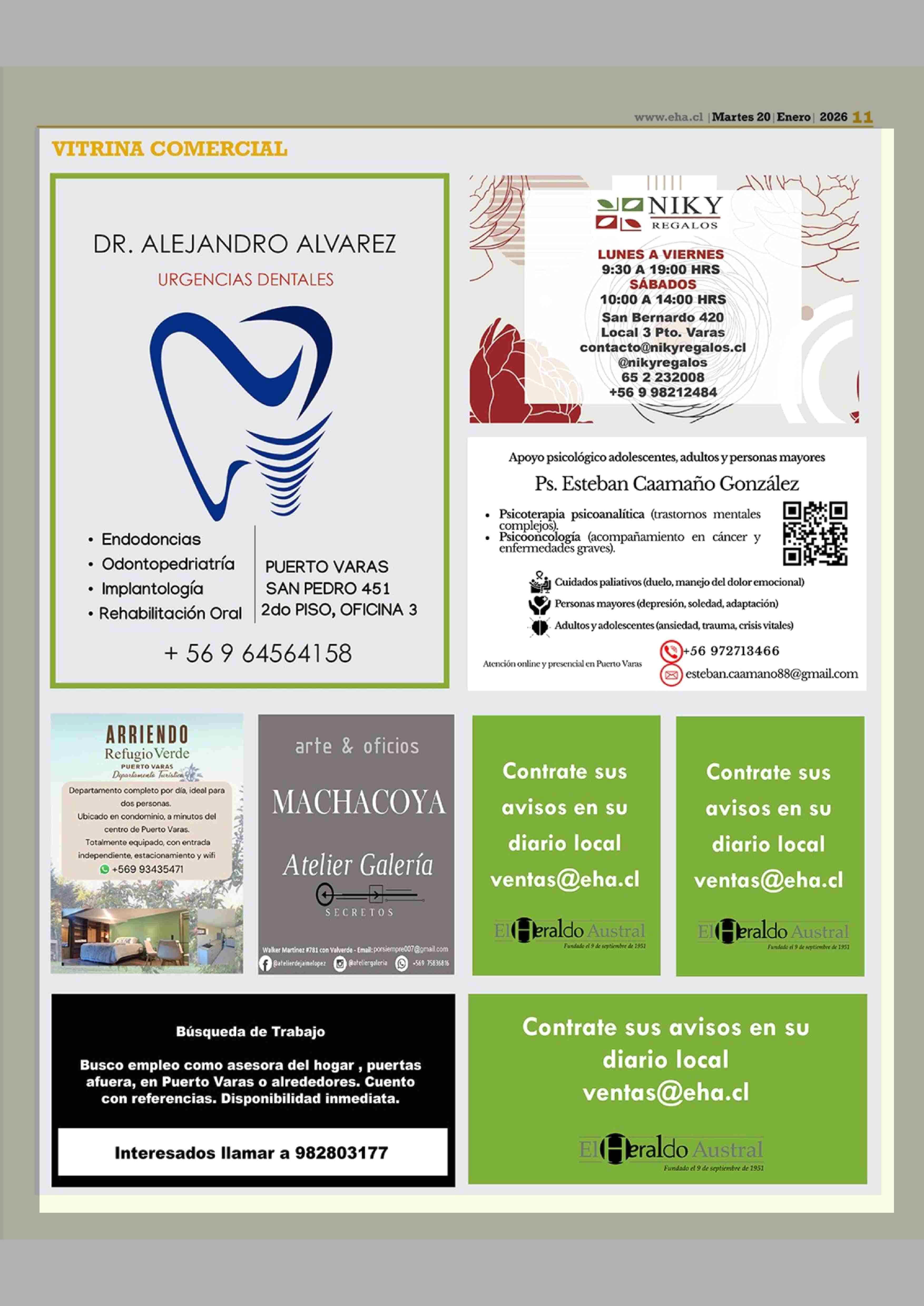 VITRINA COMERCIAL 20-01-2026 El Heraldo Austral |