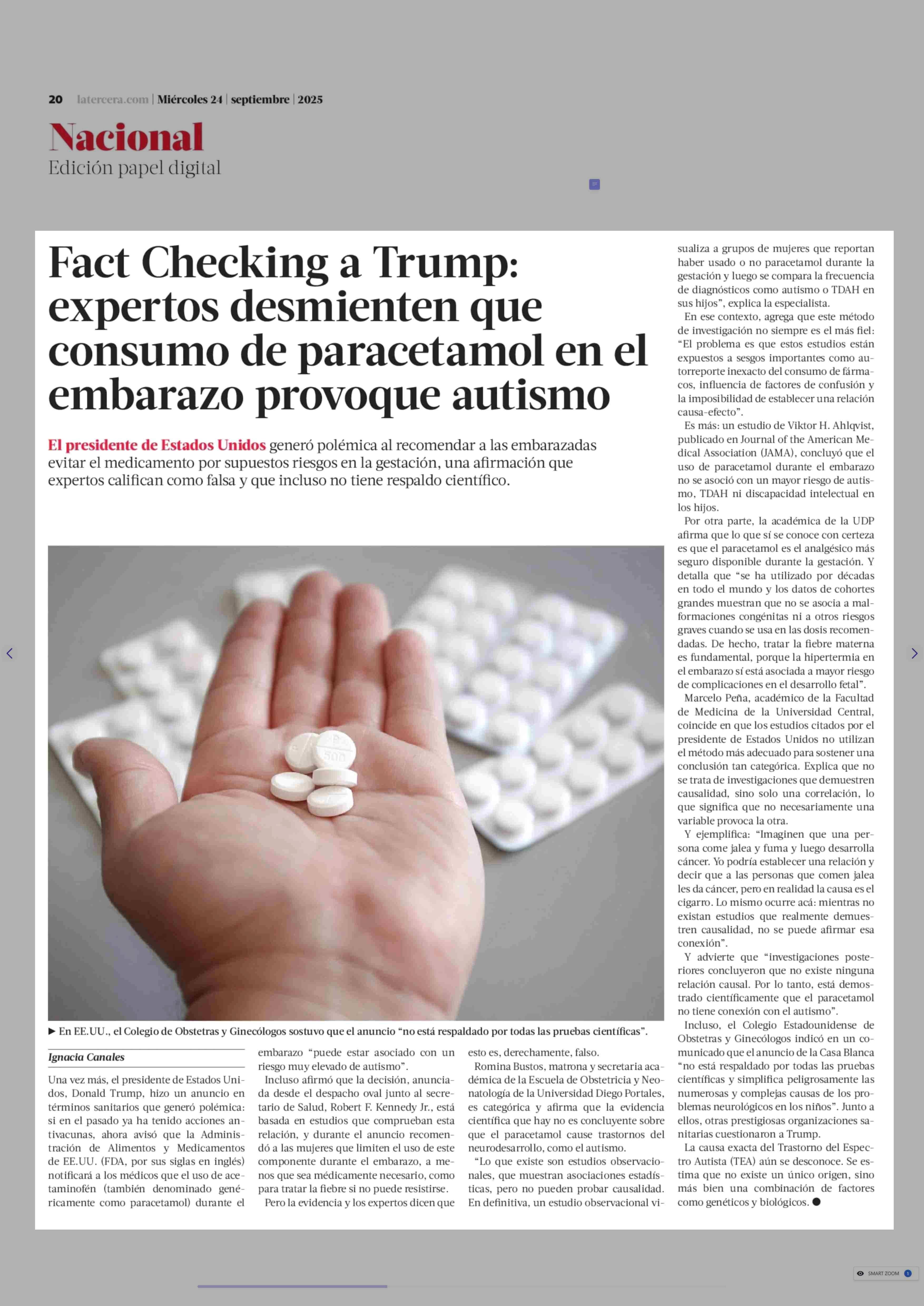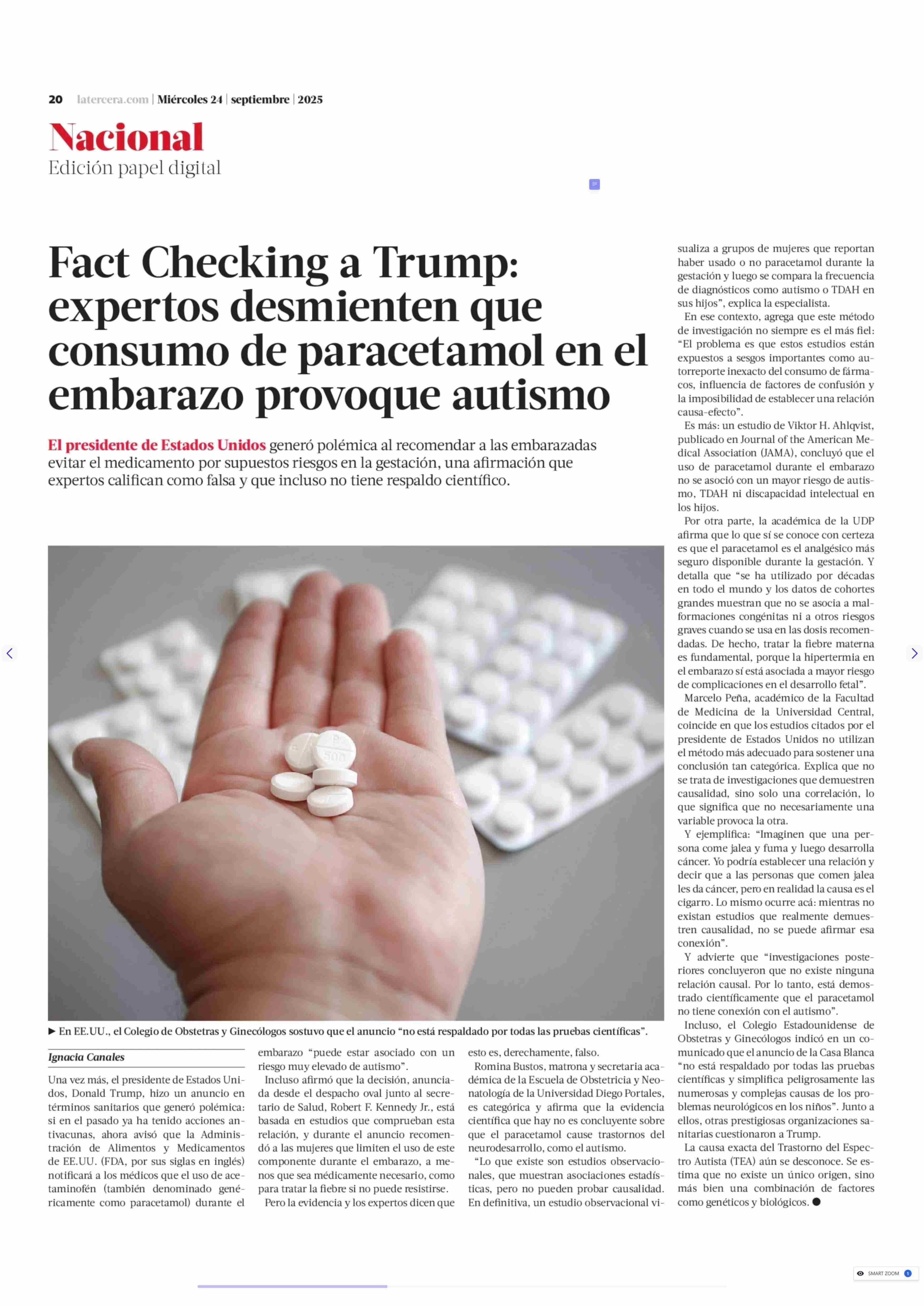 Fact Checking a Trump: expertos desmienten que consumo de paracetamol en el embarazo provoque autismo 24-09-2025 La Tercera |