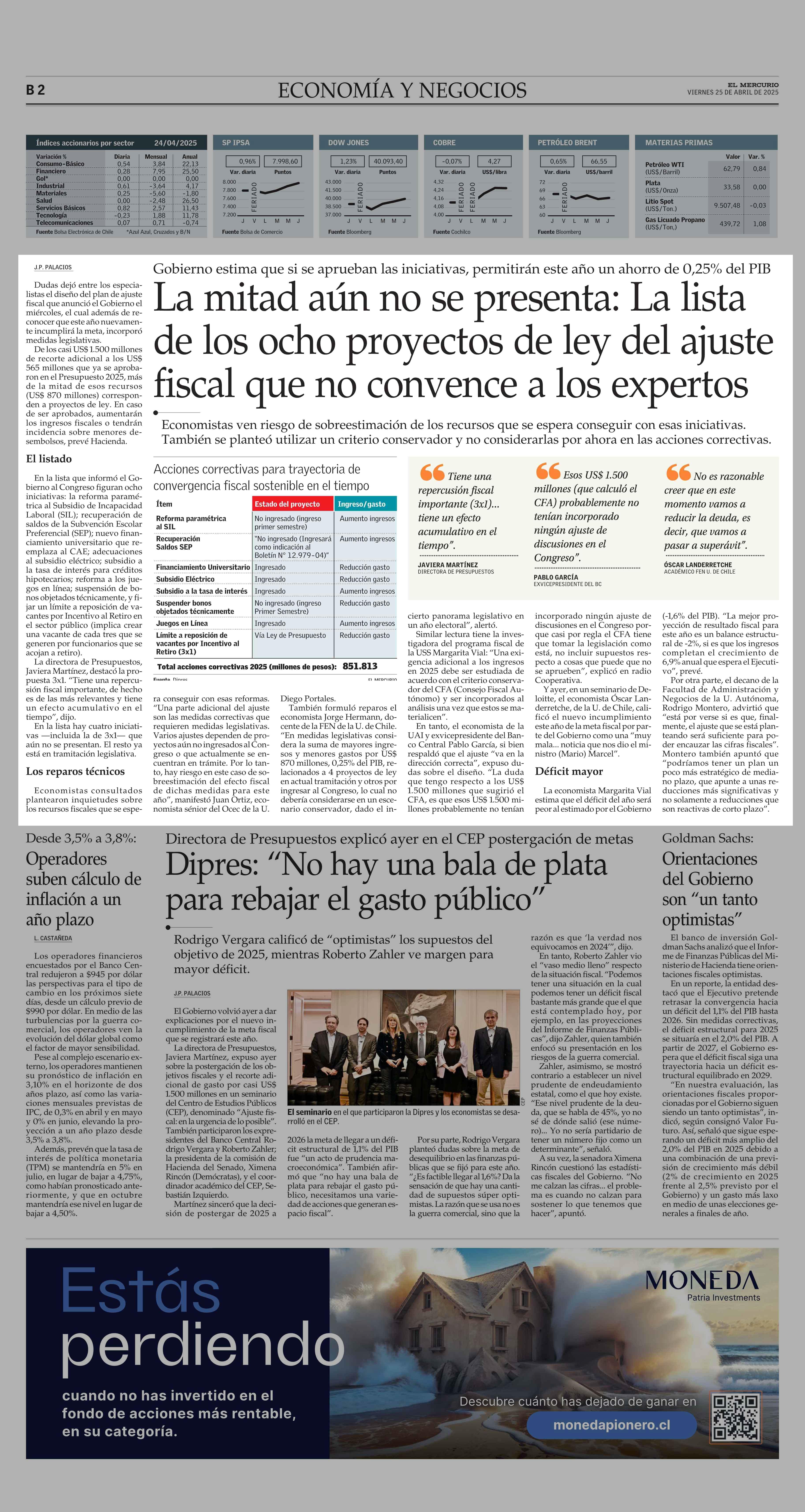 La mitad aún no se presenta: La lista de los ocho proyectos de ley del ajuste fiscal que no convence a los expertos 25-04-2025 El Mercurio |