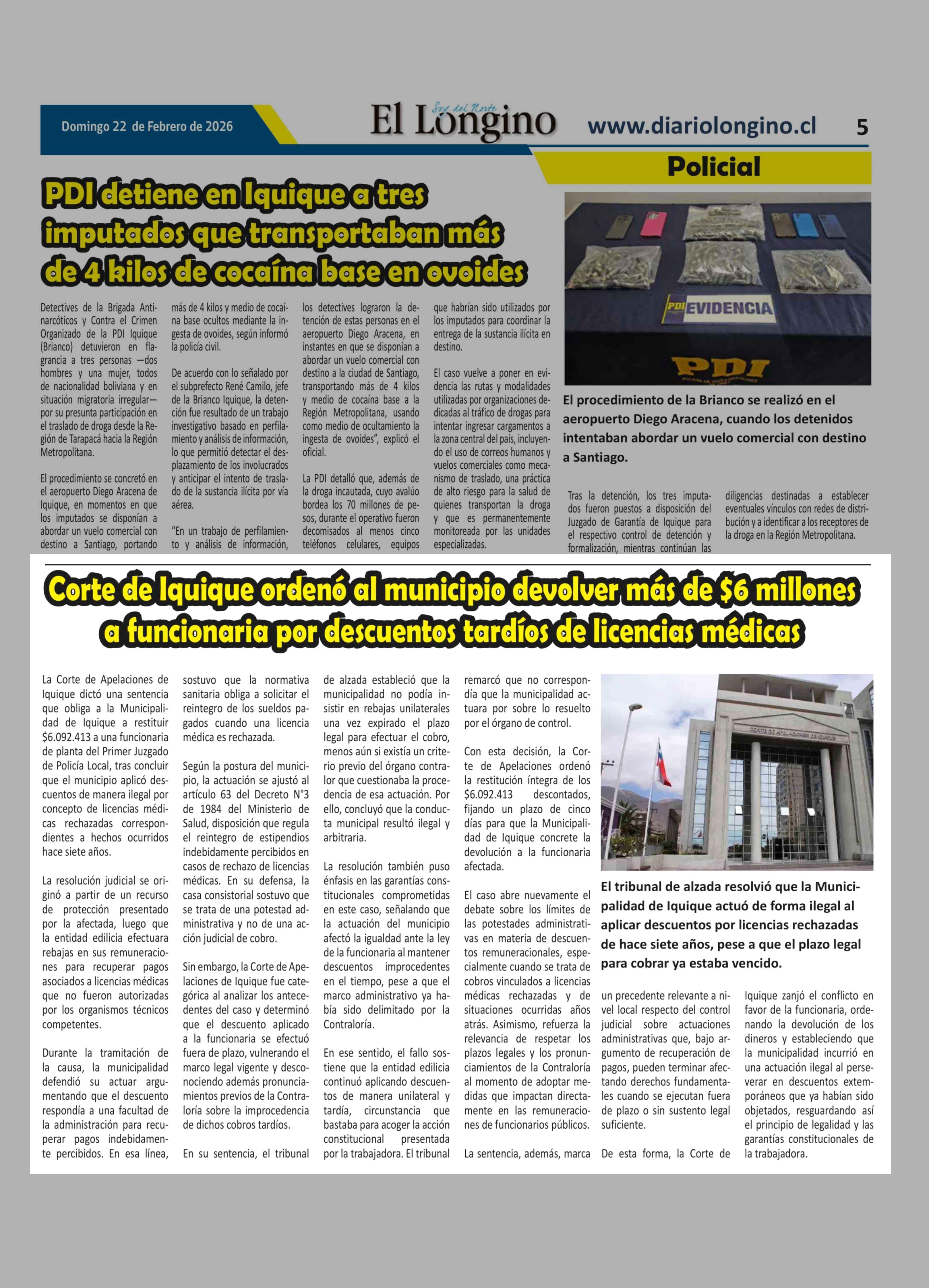Fecha: 22-02-2026 Sector: Noticia general Región: Región de Tarapacá