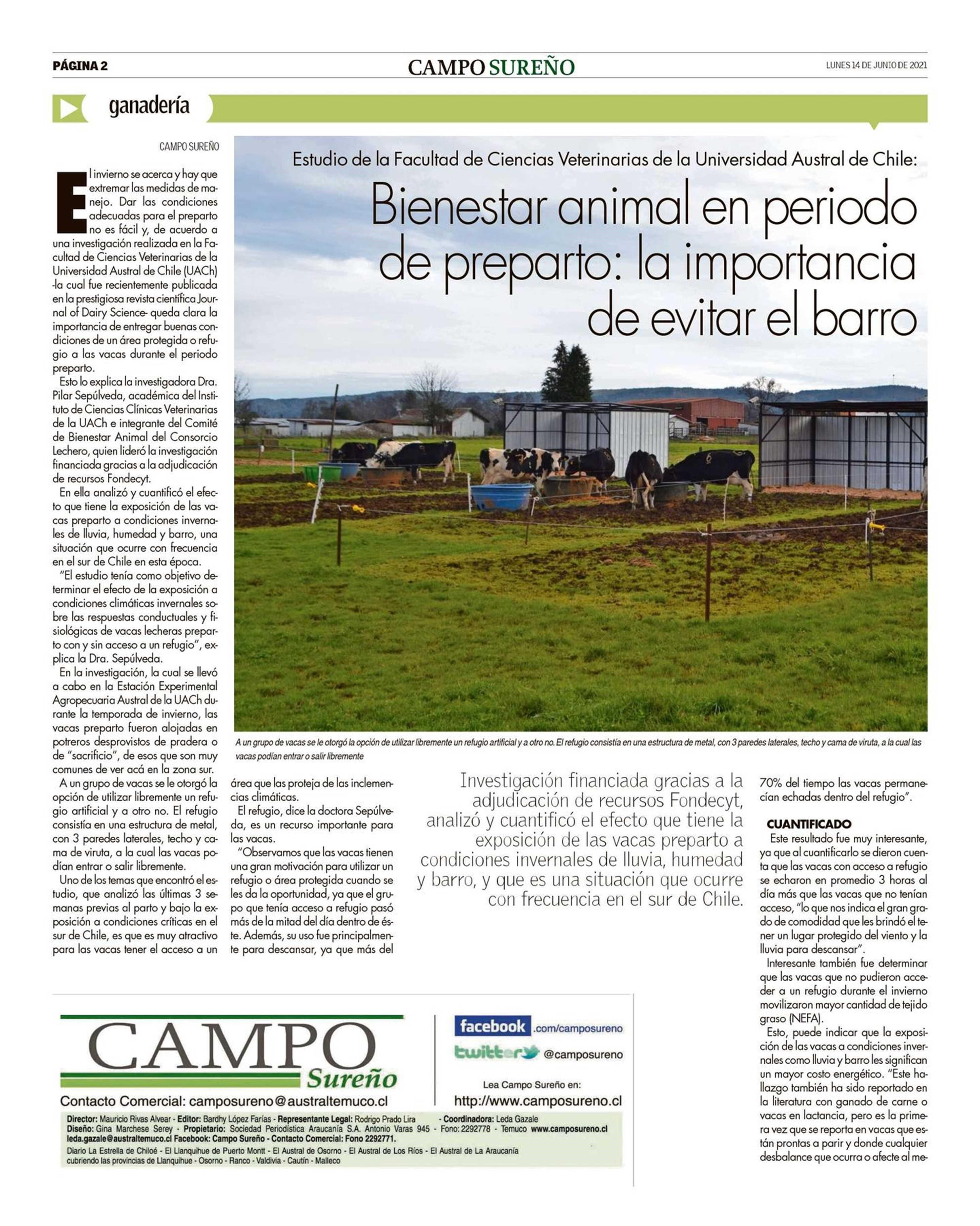 Bienestar animal en periodo de preparto: la importancia de evitar el barro 14-06-2021 Campo Sureño - Regiones IX, X y XIV |
