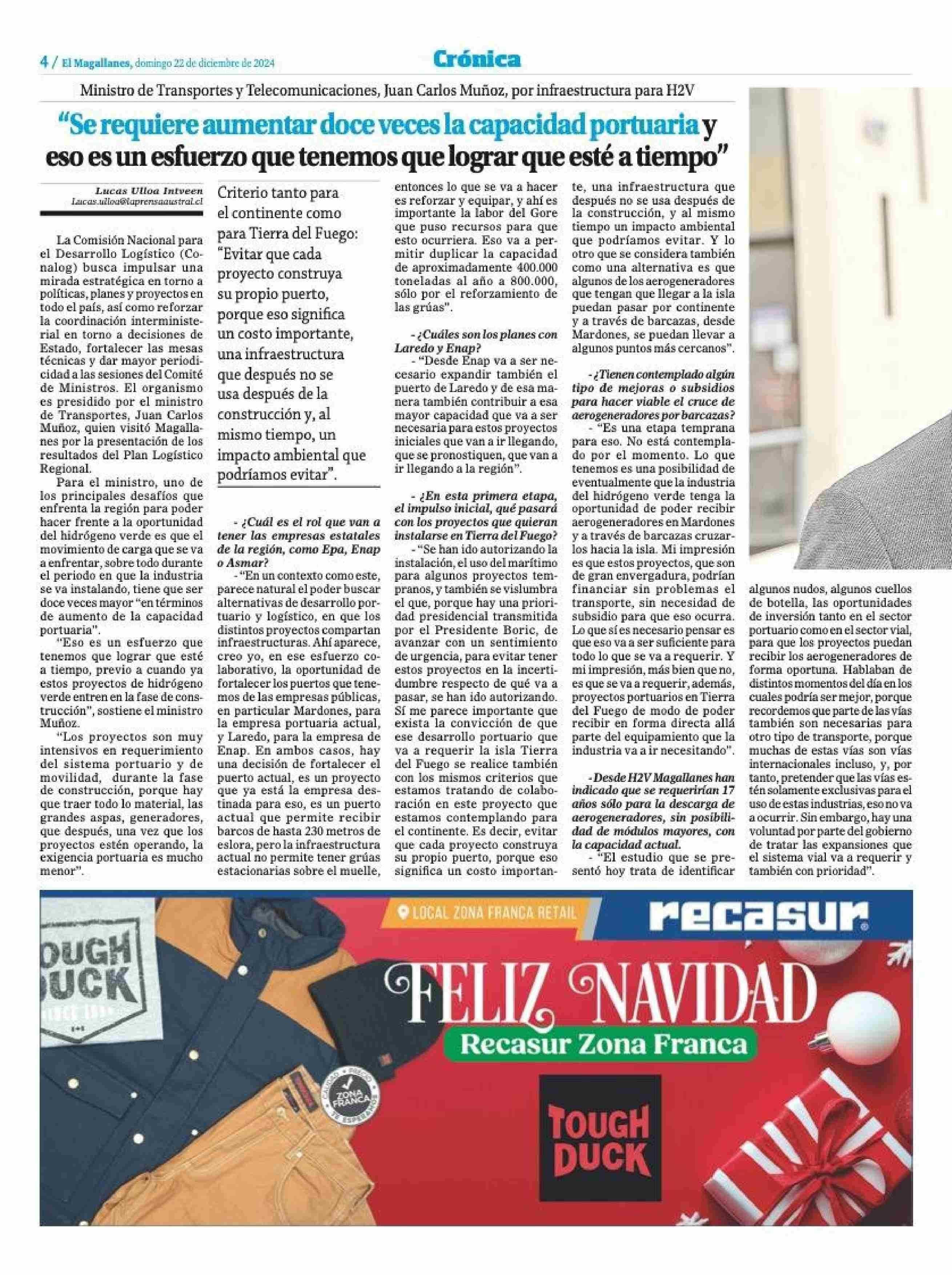 “Se requiere aumentar doce veces la capacidad portuaria y eso es un esfuerzo que tenemos que lograr que esté a tiempo” 22-12-2024 El Magallanes |
