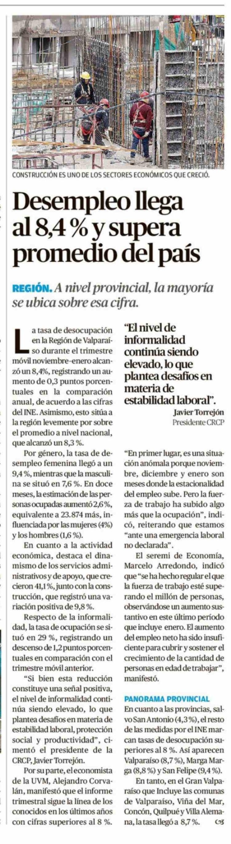 Título: Desempleo llega al 8,4 % y supera promedio del país