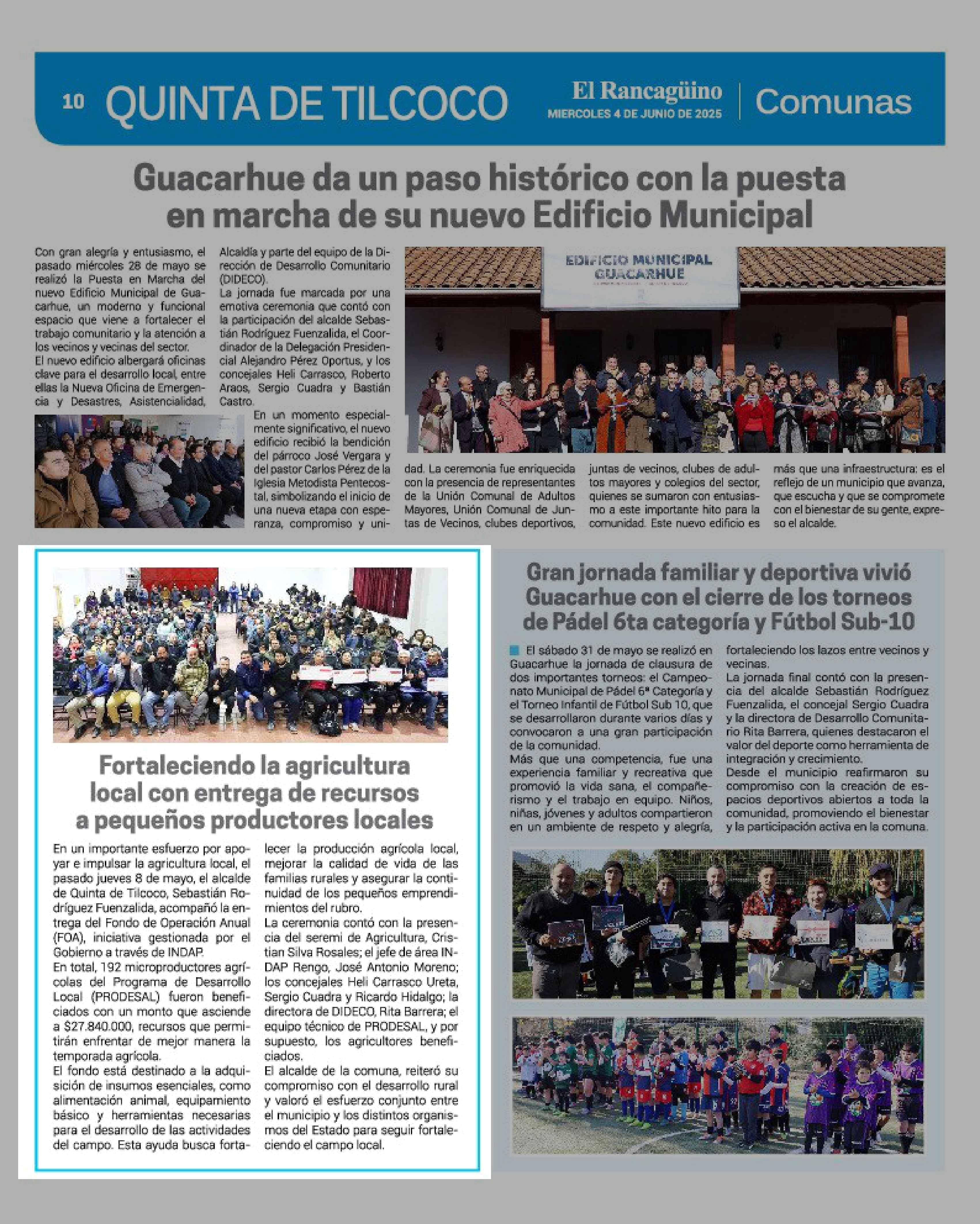 Fortaleciendo la agricultura local con entrega de recursos a pequeños productores locales 04-06-2025 El Rancagüino |