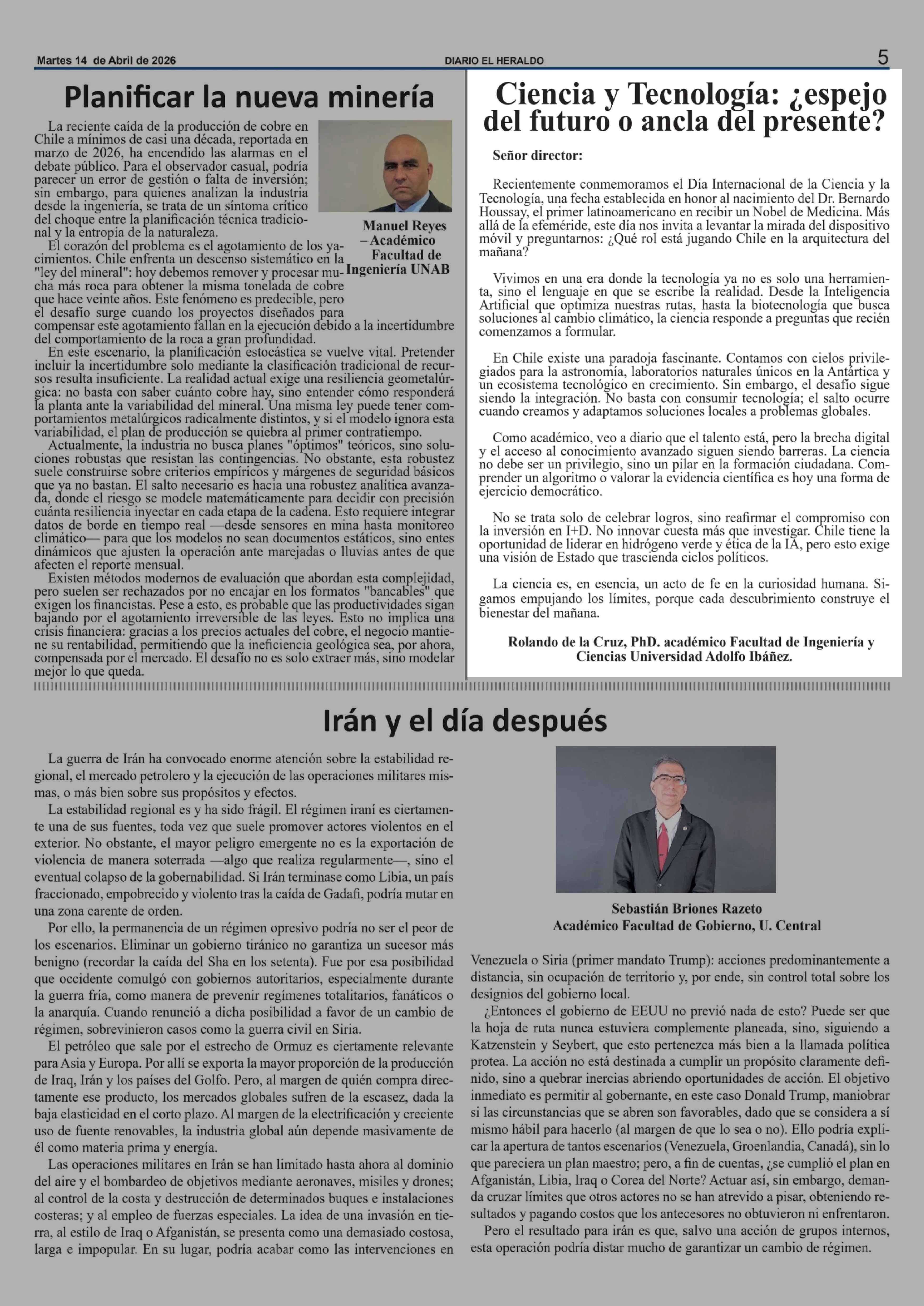 Cartas: Ciencia y Tecnología: ¿ espejo del futuro o ancla del presente? 14-04-2026 El Heraldo |
