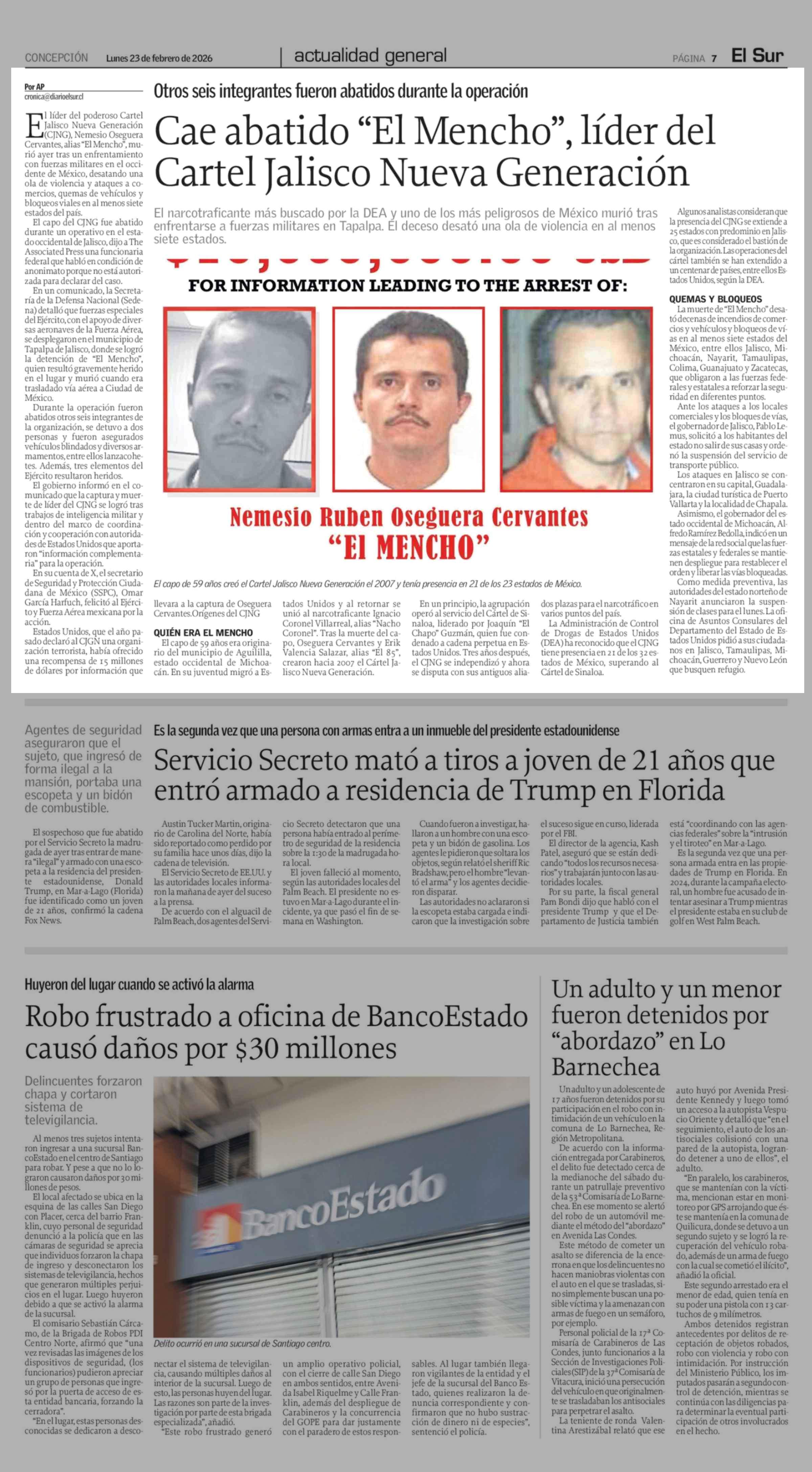 Cae abatido "El Mencho", líder del Cartel Jalisco Nueva Generación 23-02-2026 El Sur |