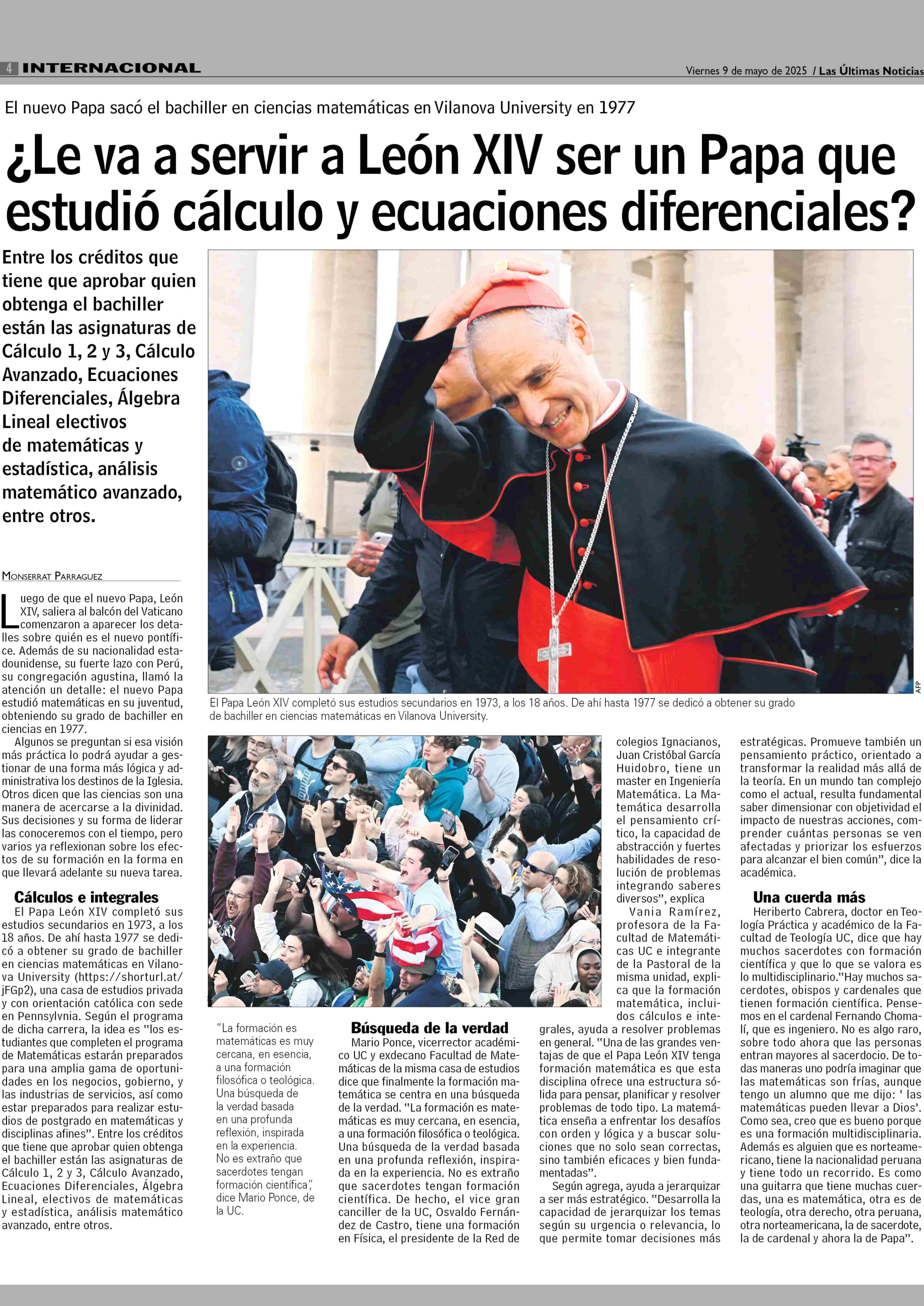 | Título: | ¿Le va a servir a León XIV ser un Papa que estudió cálculo y ecuaciones diferenciales? |