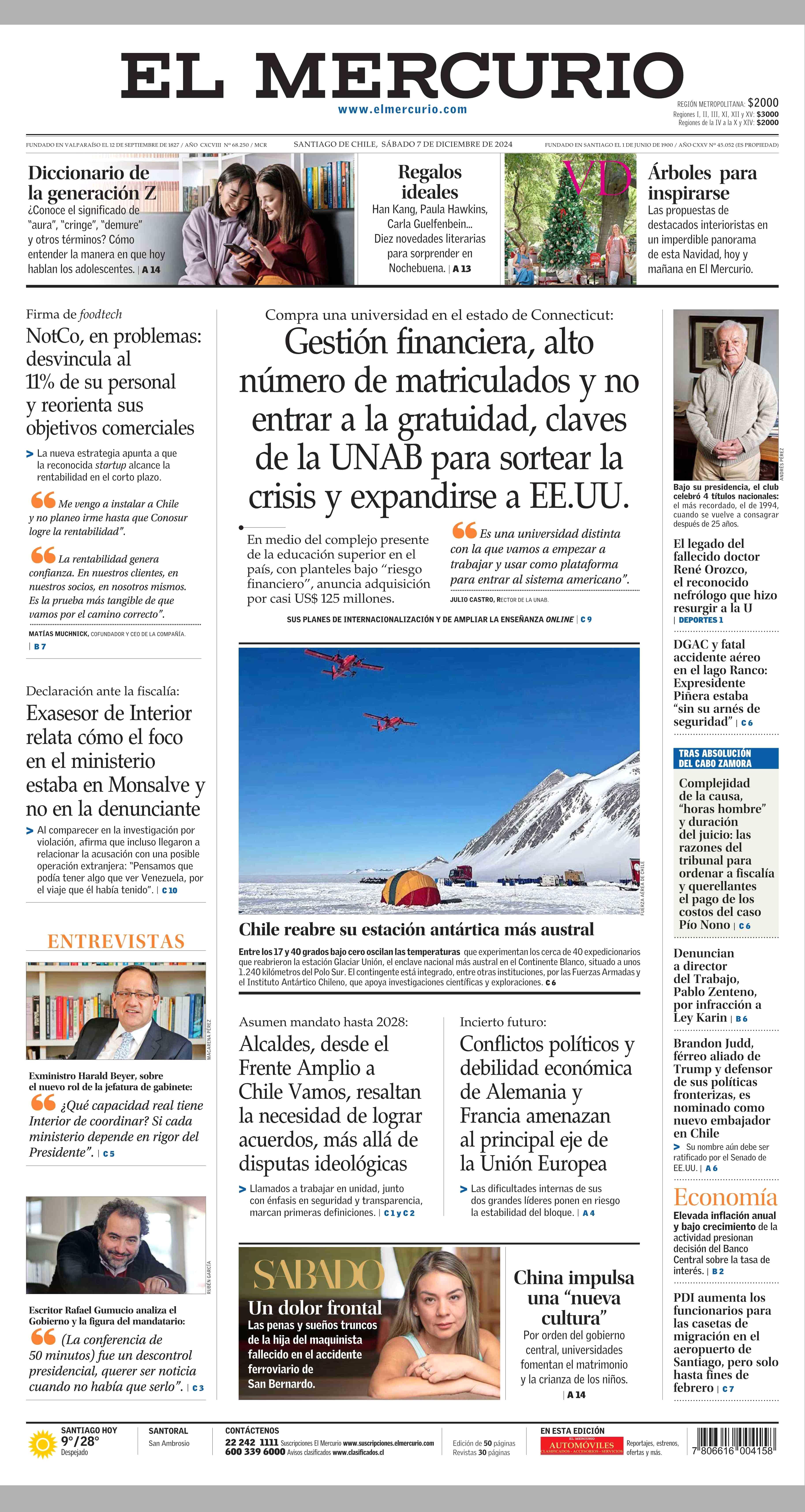 PORTADA EL MERCURIO (A) - CHILE 07-12-2024 El Mercurio |