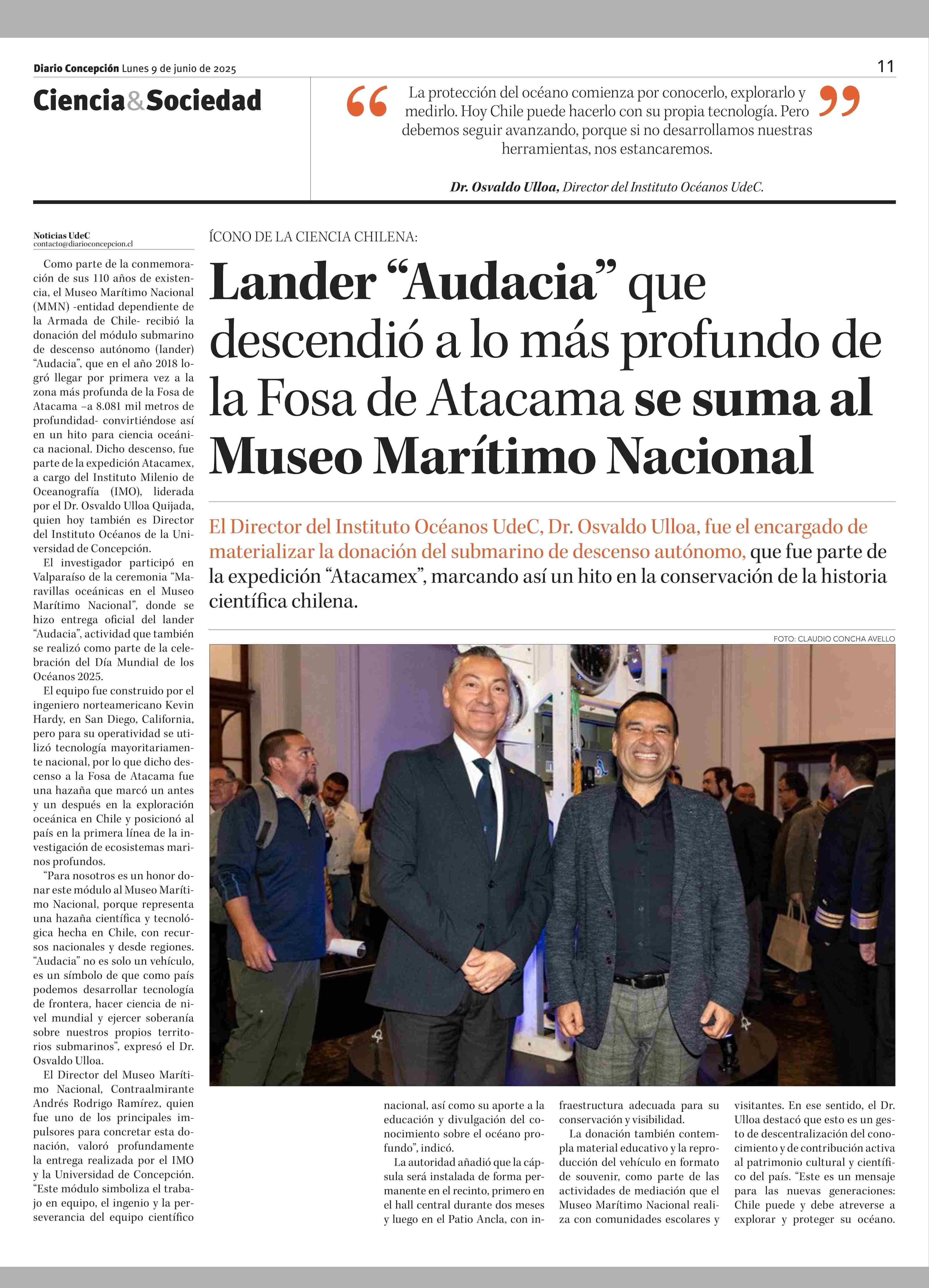 Lander "Audacia" que descendió a lo más profundo de la Fosa de Atacama se suma al Museo Marítimo Nacional 09-06-2025 Diario Concepción |