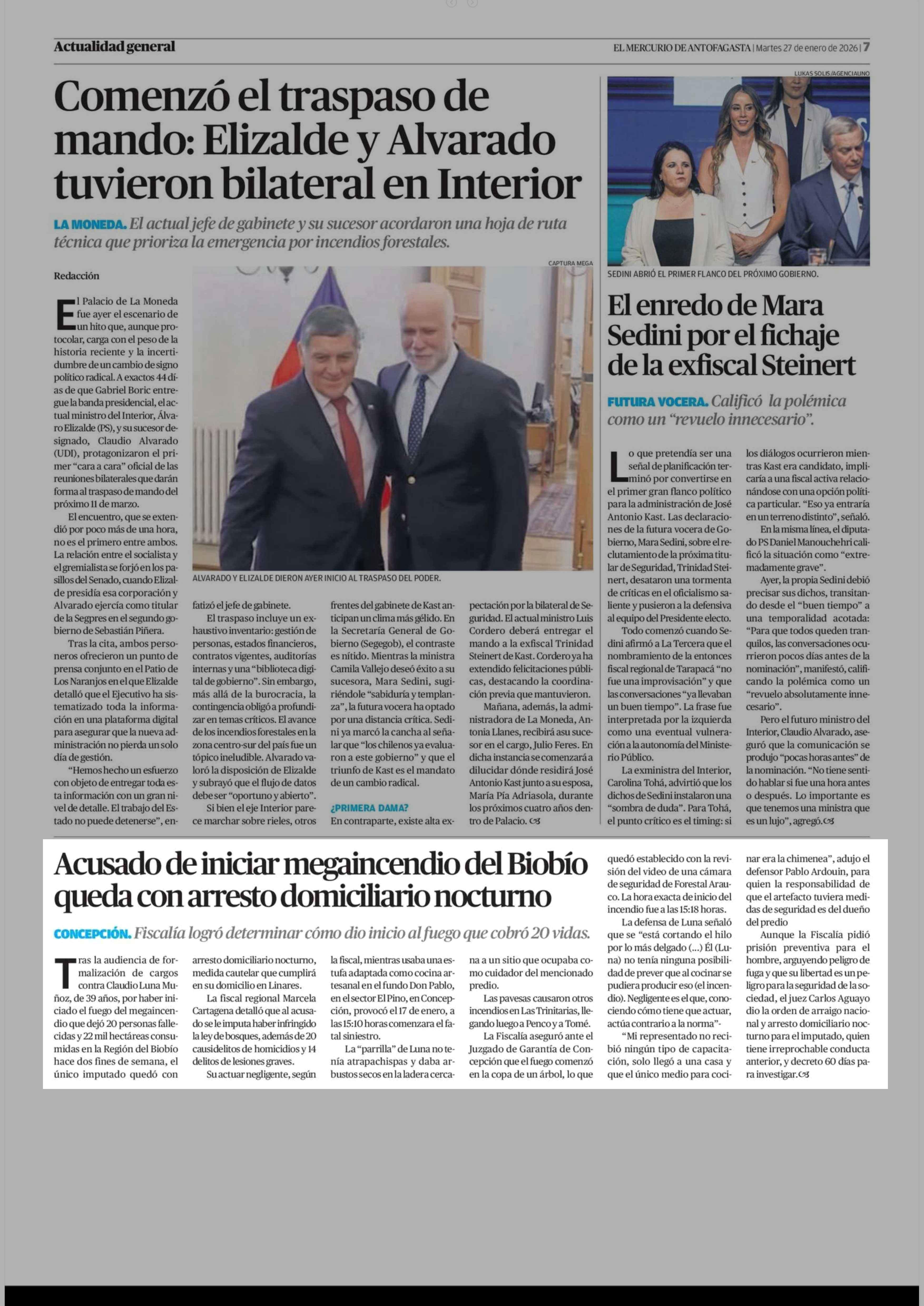 Acusado de iniciar megaincendio del Biobío queda con arresto domiciliario nocturno 27-01-2026 El Mercurio de Antofagasta |