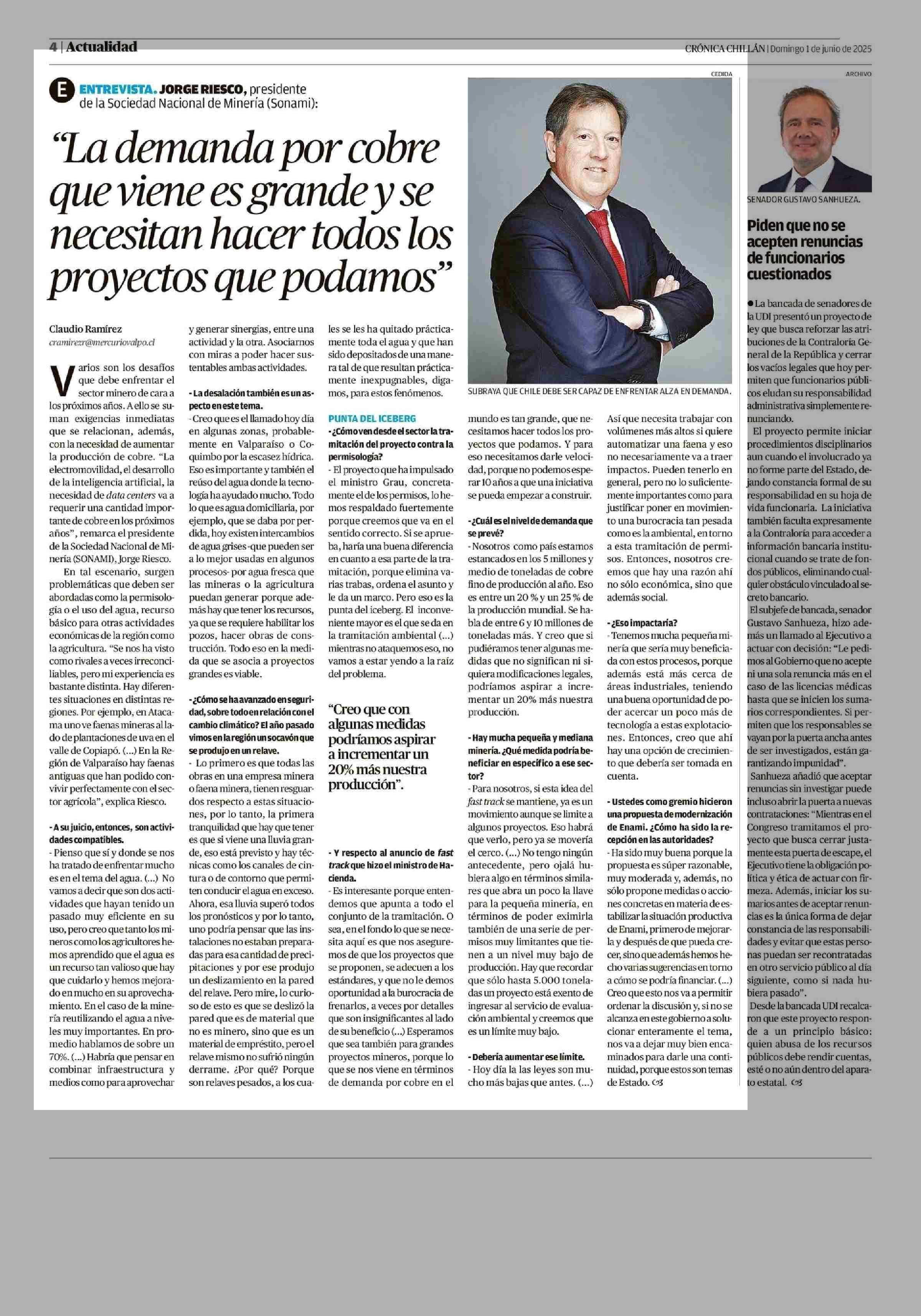 Título: “La demanda por cobre que viene es grande y se necesitan hacer todos los proyectos que podamos”