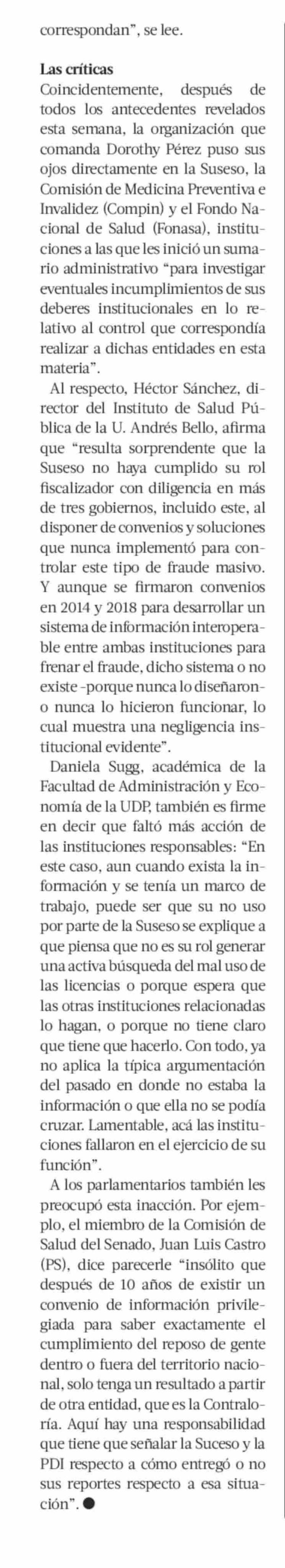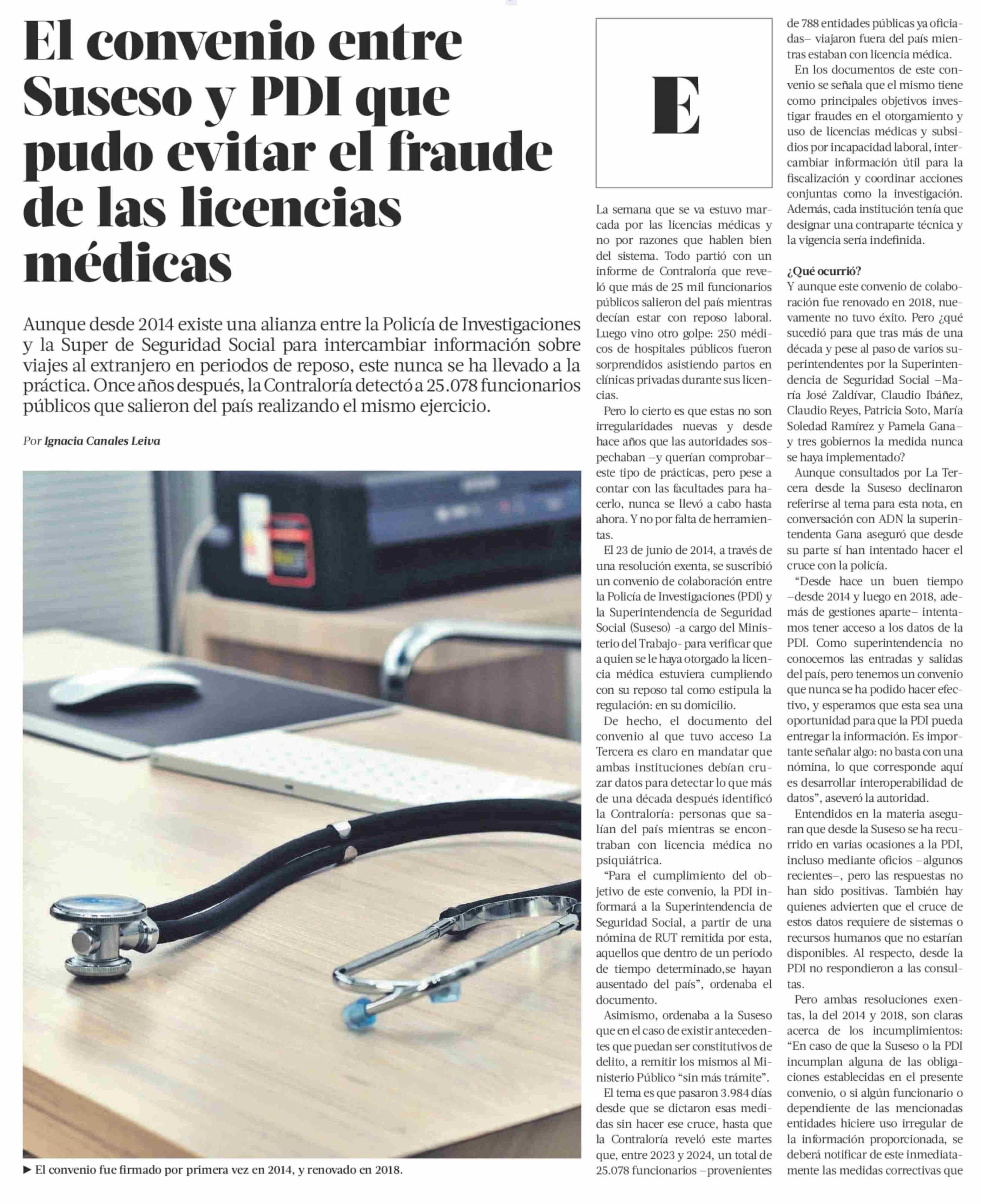 El convenio entre Suseso y PDI que pudo evitar el fraude de las licencias médicas 24-05-2025 La Tercera |