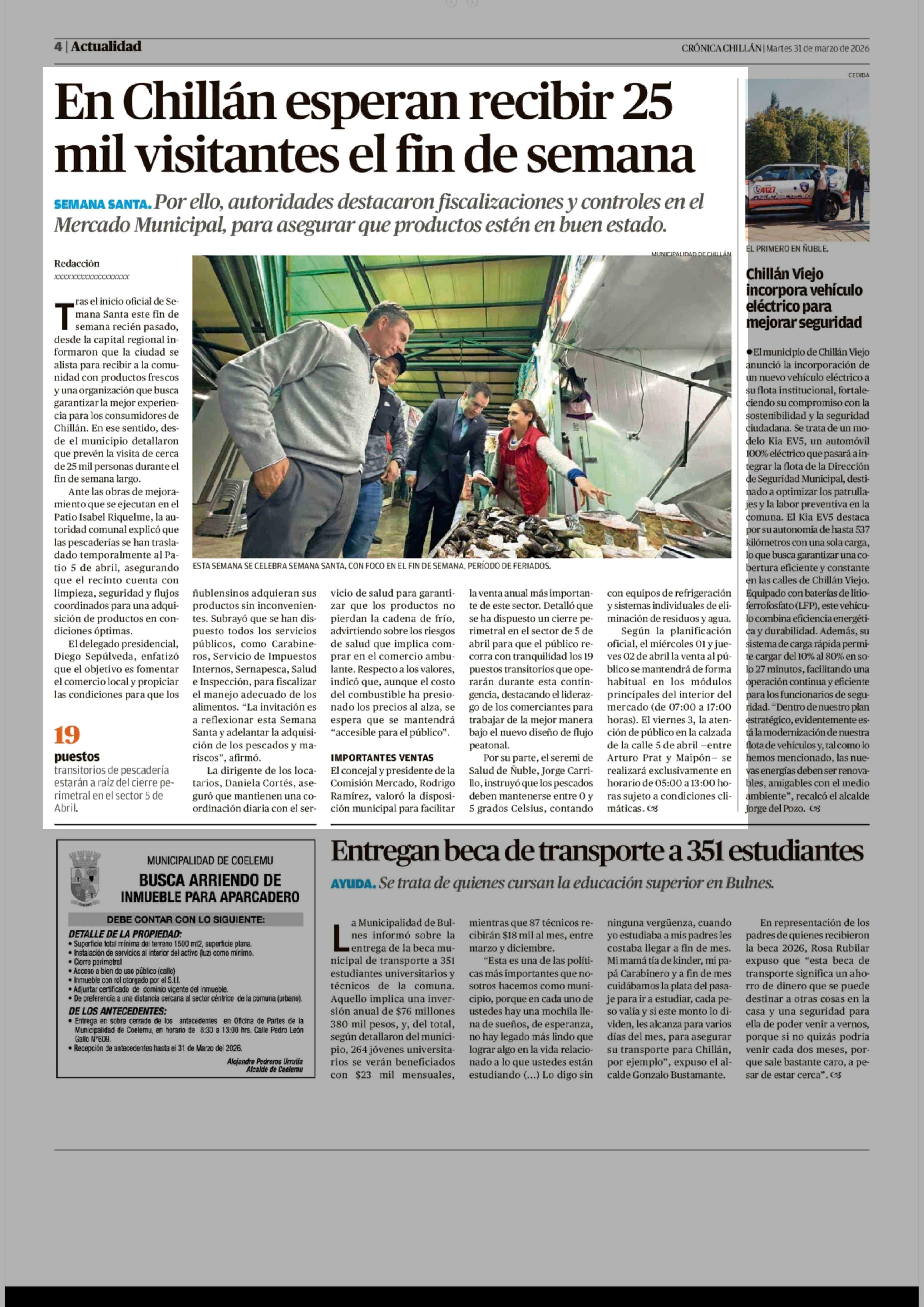 Fecha: 31-03-2026 Sector: Noticia general Región: Región del Ñuble